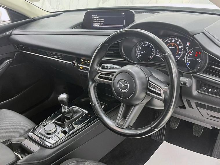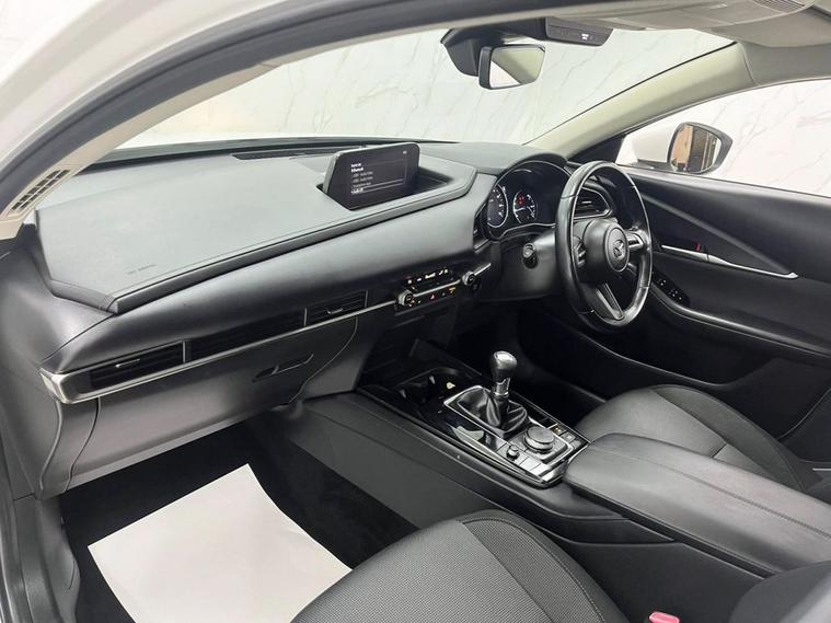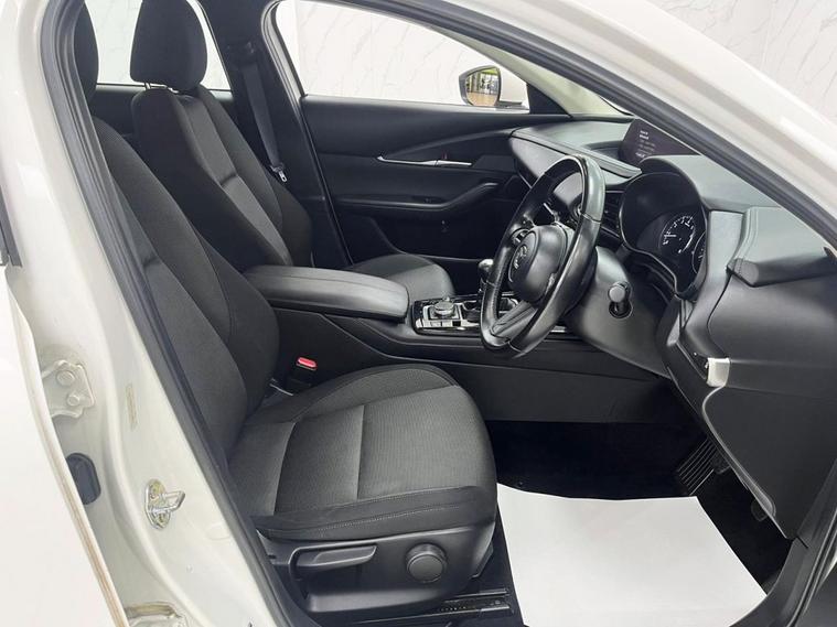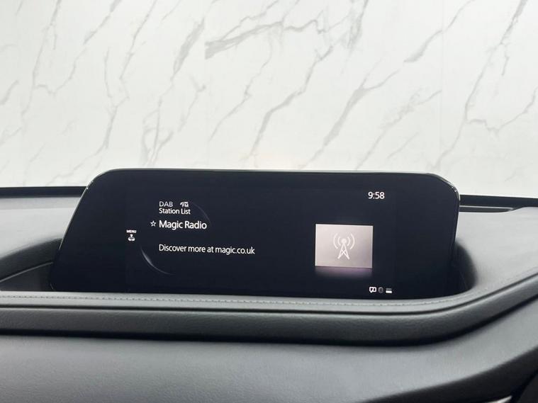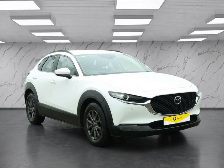 This 2022 Mazda CX-30 e-SKYACTIV G SE-L Lux boasts a full dealership service history and has had only one owner, offering excellent provenance. This stylish SUV features a 2.0L petrol engine and meets Euro 6 emissions standards. Inside, youll find a comfortable and convenient cabin equipped with heated front seats offering three stage settings, smart keyless entry, and an integrated Bluetooth system for seamless connectivity. For added ease and safety, it includes front and rear parking sensors and Mazda Radar Cruise Control, which provides adaptive cruise control functionality. The CX-30 SE-L Lux is designed to offer a superior driving experience, highlighted by its impressive fuel economy of 48 mpg and low CO2 emissions, making it a more economical and environmentally conscious choice compared to similar vehicles. Its low insurance group rating further enhances its appeal, suggesting lower running costs for owners. A clear vehicle history check confirms its sound condition, providing peace of mind for its next owner.
