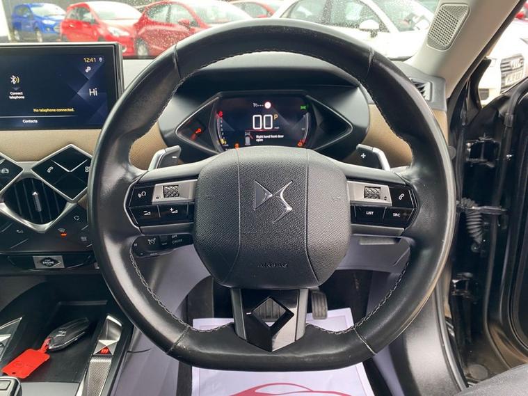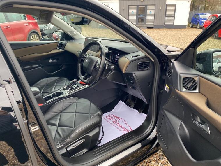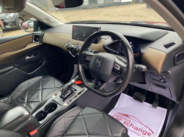 AUTOMATIC+LONG MOT UNTIL 29.10.2026+10 INCH HD TOUCHSCREEN WHICH FEATURES DS CONNECT SATELLITE NAVIGATION+VOICE RECOGNITION+DAB DIGITAL RADIO+BLUETOOTH HANDSFREE AND MEDIA STREAMING+AUTOMATIC AIR-CONDITIONING+AUTOMATIC HEADLIGHT ACTIVATION+AUTOMATIC WINDSCREEN WIPERS+FRONT & REAR PARKING ASSISTANCE+PERLA NERA BLACK+17 INCH ALLOY WHEELS. At Haverhill Car Xchange we would like to offer you our AUTOMATIC DS3 Crossback PureTech Prestige Crossback which has been finished in a Peral Nera Black paint with Black Basalt Grained Leather upholstery. Excellent Specification Includes a 10 Inch HD Touchscreen which features a DS Connect Satellite Navigation System, Voice Recognition, DAB Digital Radio, Bluetooth Handsfree and Media Streaming with USB Socket, Two Front USB Connection Points, 12 Volt Power Socket, Automatic Air-Conditioning, Cruise Control with Speed Limiter, Front and Rear Electric Windows, Body Coloured Bumpers/Door Handles/Rear Spoiler and Door Mirrors with Integrated Side Indicators, Automatic Halogen Headlight Activation, LED Daytime Running Lights, 3D LED Rear Lights, Automatic Windscreen Wipers, Front and Rear Parking Assistance, Premium Seat with Comfort and Pads, Multifunction Leather Steering Wheel, Heated Rear Windscreen, Keyless Start, Electric Parking Break, 17 Inch Alloy Wheels, Variable Power Assisted Steering, Hill Start Assist, ABS Breaking System, Airbags, Alarm, Immobiliser, Remote Central Locking and ISOFIX Anchorage Points for Child Seats.