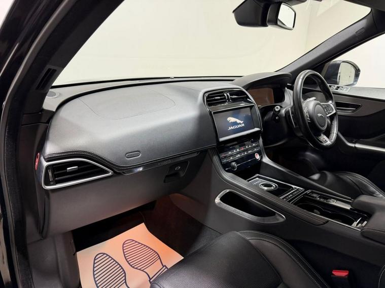 ** TIMING BELT CHANGED 2025 ** NATIONWIDE DELIVERY **X2 KEYS ** PANORAMIC SUNROOF ** MERIDIAN SOUND SYSTEM ** DIGITAL COCKPIT **REVERSE CAMERA ** SERVICE HISTORY ** FRESH SERVICE ** MOT VALID UNTIL 21/01/27 ADVISORIES CLEARED ** 6 MONTH WARRANTY ** 12 MONTH AA BREAKDOWN COVER ** This Jaguar F-PACE 3.0 D300 V6 S AWD SUV combines performance, luxury and cutting-edge technology. It sits confidently on 20in 5-spoke alloy wheels and features the S body kit, gloss black exterior detailing, xenon headlights with LED signature and satin chrome accents. Adaptive Dynamics, configurable driving modes, torque vectoring and All Surface Progress Control deliver assured handling in all conditions, while advanced safety systems include Autonomous Emergency Braking, Lane Departure Warning, Traffic Sign Recognition, front and rear parking aids and a rear-view camera. Inside, the cabin is refined and sporty with 10-way electric heated sports seats, Ebony Morzine headlining, ambient interior lighting and brushed metal S detailing throughout. Technology highlights include an 8in touchscreen navigation system, Meridian 380W sound system, DAB radio, Bluetooth connectivity and InControl Apps. Comfort is enhanced by dual-zone climate control, keyless entry, power tailgate, rear air vents and a split-fold rear seat, making this F-PACE a practical yet premium SUV with unmistakable Jaguar character.