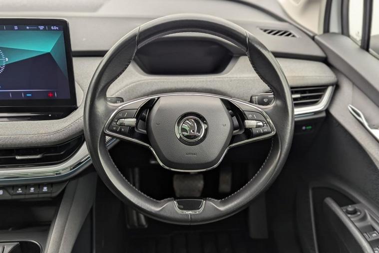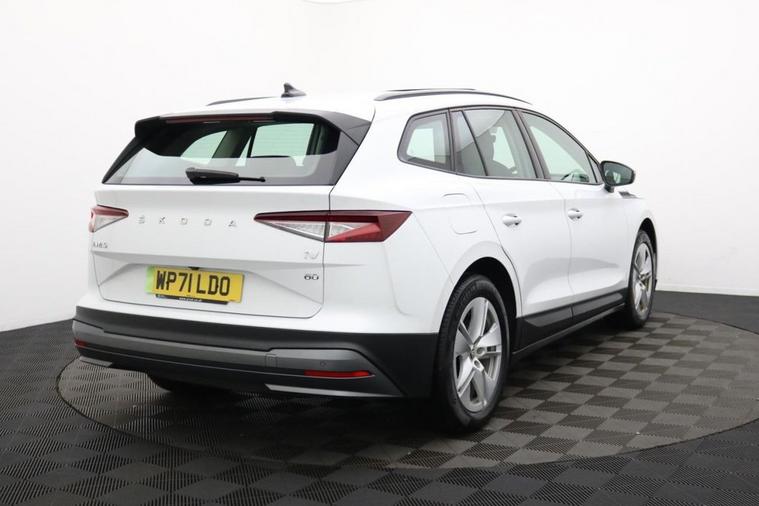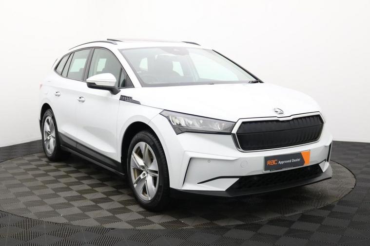 Henson Car Store presents the SKODA ENYAQ 62kWh 60 SUV 5dr Electric Auto (179 ps) finished in White, this car comes with service history and is VAT qualifying. This 2021 Skoda Enyaq 60 is a superb example, having been owned by just one person since new. As an electric vehicle, it offers a smooth and quiet driving experience, powered by a 62 kWh battery that provides a maximum range of 256 miles when new. Charging at home with a 7kW charger takes approximately 9 hours and 30 minutes, while rapid public charging can take the battery from empty to 80% in just 58 minutes. The Enyaq 60 boasts a generous boot space, making it incredibly practical for everyday use and longer journeys. This spaciousness, combined with its efficient electric powertrain and impressive charging capabilities, sets it apart from many other vehicles in its class, offering a compelling blend of utility and modern motoring. Stock Number 38