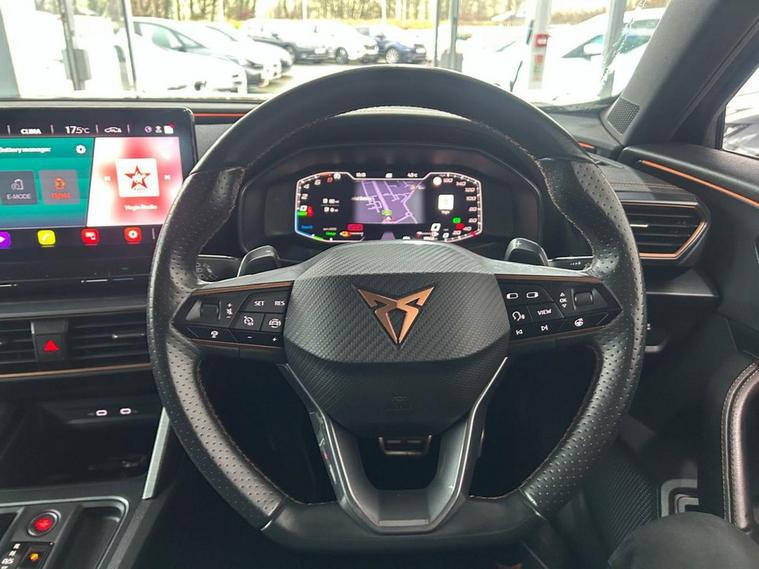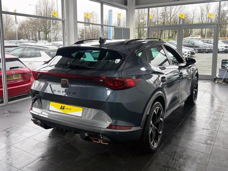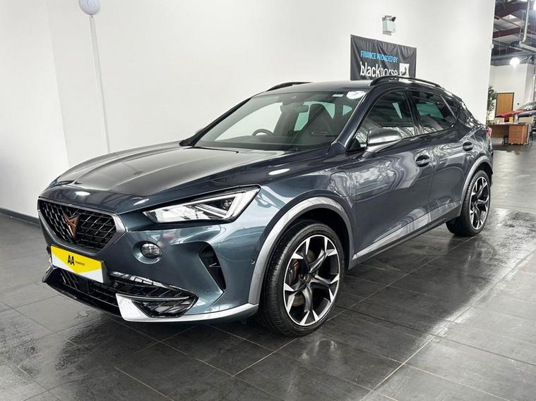 This 2021 CUPRA Formentor eHybrid VZ1 presents an exceptional opportunity with its remarkably low mileage of just 18, 496 miles. This Euro 6 compliant plug in hybrid model combines a 1.4 litre petrol engine with electric power, offering an efficient and dynamic driving experience. The VZ1 trim level is well appointed, featuring the Safety and Driving Pack L which includes Blind Spot Assistance, ensuring greater awareness on the road. Youll also benefit from automatic headlights with daytime running lights and coming leaving home functionality, along with Park Assist that uses front and rear sensors to aid manoeuvring. Further enhancing this CUPRA Formentor are features designed for modern convenience and safety. Predictive Adaptive Cruise Control with Speed Limiter helps maintain a set speed and distance from the vehicle ahead, while the Wireless Phone Charger keeps your devices powered up without the need for cables. These notable features, combined with the vehicles advanced hybrid technology and low mileage, position this 2021 CUPRA Formentor eHybrid VZ1 as a superior choice for those seeking a sophisticated and economical drive.