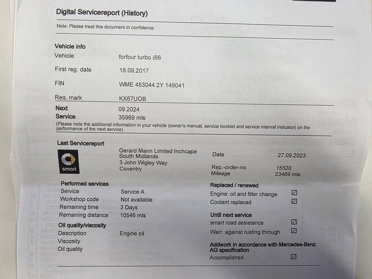 This 2017 Smart forfour T Passion is a standout example, boasting exceptionally low mileage for its age, having covered just 26, 596 miles. This one owner vehicle has a clear history check and is powered by an efficient 0.9L Euro 6 petrol engine. Inside, youll find the comfort of Automatic Climate Control, ensuring a pleasant cabin temperature whatever the weather. This Smart forfour T Passion offers several advantages that set it apart. Its impressive fuel economy of 66 mpg means fewer trips to the petrol station, and its low insurance group makes ownership more affordable. Furthermore, its low CO2 emissions contribute to a more environmentally friendly drive, making this a sensible and economical choice for city driving and beyond.