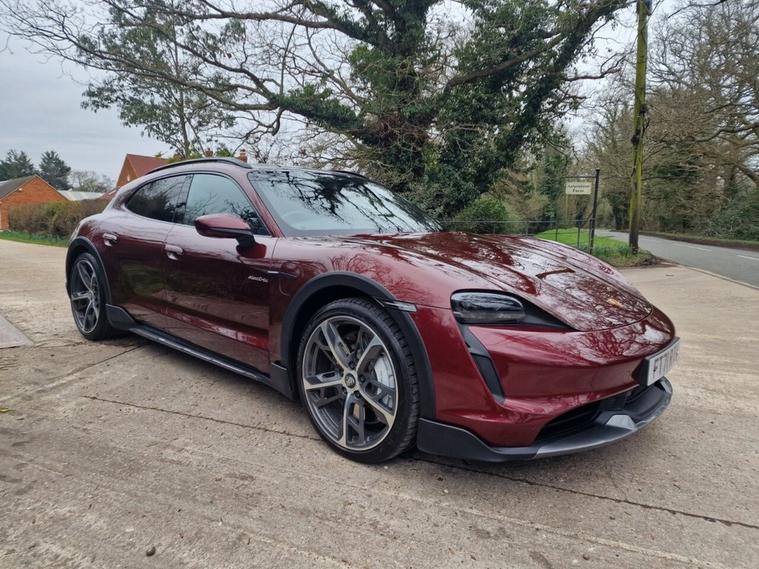 This Taycan Cross Turismo Turbo is a 1 owner car and comes with full main dealer service history. THIS VEHICLE IS VAT QUALIFYING. Comes in Cherry red with full black leather interior. 18k options which include Power Steering Plus, Comfort Access, Side window trims in Black (high-gloss), HomeLink, Roof rails in Black Aluminium, Burmester 3D High-End Surround Sound System, Porsche InnoDrive including Adaptive Cruise Control, Privacy glass, Ambient lighting, Ioniser, Porsche Dynamic Chassis Control Sport (PDCC Sport), Centre console armrest (front) with Porsche Crest, Seat massage function (front seats, incl. seat ventilation), ParkAssist including Surround View, Head-Up Display, 4+1 Seats, Sport Chrono Package including compass display on the dashboard, Electric folding exterior mirrors, Heated GT sports steering wheel in leather, Windscreen with grey top-tint, Passenger Display, Panoramic roof, fixed, Porsche Electric Sport Sound, 22kW on-board AC charger, Advanced Climate Control (4-Zone), Electric charging cover, 150kW DC on-board booster, Aluminium Rhombus interior package, Illuminated door sill guards in black brushed aluminium, electric side badge, 21-Inch Cross Turismo Design Wheels, Offroad Design Package, Rear light strip with PORSCHE logo in black, Exclusive Matrix LED headlights in black with Porsche Dynamic Light System Plus, Apple car play and Android auto. Speak to our sales team Directly or WhatsApp Message on 01992692459 for any enquiries or to discuss part exchange valuations. Xclusive Xports are a used car dealership based in Bayford Hertfordshire, SG13 8PZ. Specialising in UK sales as well as export of vehicles, upon request. Established since 2008, with a wide range of used vehicles to suit all budgets and lifestyles, we are sure to have the right car for you. VIEWINGS ONLY BY APPOINTMENT 7 DAYS A WEEK. As an APPROVED AA CAR DEALERSHIP all vehicles are HPI CHECKED & PROVIDED WITH A 12 MONTHS FREE AA BREAKDOWN COVER. Visit our website dealer's website for GREAT FINANCE OPTIONS & TO APPLY ONLINE. Delivery is available throughout the UK, upon request. In addition, we provide a WARRANTY for total peace of mind which can be extended. PART EXCHANGE WELCOME. Please contact us for further information, and check out our 5 STAR REVIEWS. BUY IN CONFIDENCE