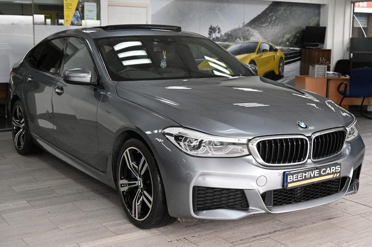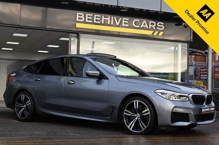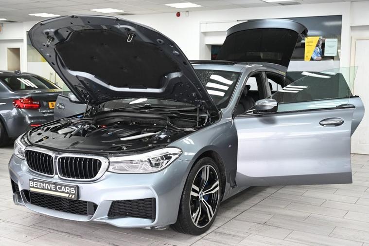 DRIVE AWAY TODAY OR HOME DELIVERY TO YOUR DOORSTEP FINANCE & PART EXCHANGE ARRANGED ONLINE** 7 DAY MONEY BACK GUARANTEE** Nice spec BMW 630d m-sport gran turismo gt in lovely metallic bluestone with full service history sat nav cd dab radio bluetooth media usb harman kardon surround sound reverse camera panoramic glass roof full black leather seats with armrest heated seats electric seats electric folding door mirrors front and rear parking aid sensors xenon lights eco comfort sport individual driving modes m-sport steering wheel with f1 style paddleshifts push button start stop electric push button tailgate m-sport bodystyling kit alloys privacy