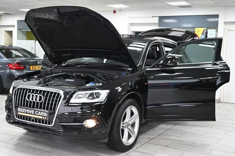 DRIVE AWAY TODAY OR HOME DELIVERY TO YOUR DOORSTEP FINANCE & PART EXCHANGE ARRANGED ONLINE** 7 DAY MONEY BACK GUARANTEE** Nice spec Audi Q5 2.0 tdi quattro s-line plus suv in metallic black with full audi service history (11 main dealer audi services) with 1 owner from new sat nav audi multimedia dab radio bluetooth media panoramic glass roof s-line leather seats with armrest heated seats electric heated folding door mirrors front & rear parking aid sensors xenon lights flat bottom s-line steering wheel with f1 style paddleshifts electric push button tailgate alloys privacy