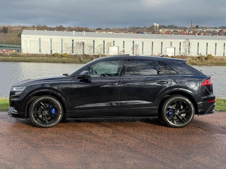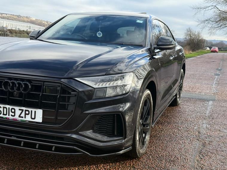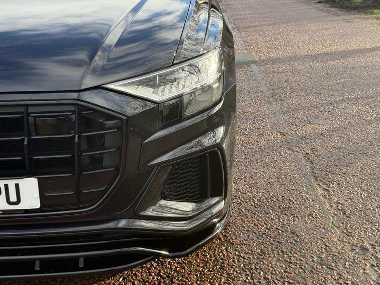 STUNNING AUDI Q8 IN ORCA BLACK METALLIC WITH FULL BLACK PACK AND BODY STYLING KIT, FRONT SPLITTER, SIDE SKIRTS, PRIVACY GLASS, THIS CAR LOOKS AMAZING AND COMES WITH SOME LOVELY SPEC INCLUDING TOUR PACK, COMFORT + SOUND PACK, OPENING PAN ROOF, BAND + OLUFSEN SOUND SYSTEM, 22 ALLOY WHEELS, HEATED ELECTRIC MEMORY SEATS, DUAL AIR CON, 360 CAMERA, ELECTRIC TAILGATE AND LOTS MORE, THIS CAR COMES WITH A FULL AUDI SERVICE HISTORY LAST DONE MARCH 2025, NEXT SERVICE IS DUE SOON WHICH WE WILL PROVIDE ALONG WITH AN MOT AND WARRANTY.