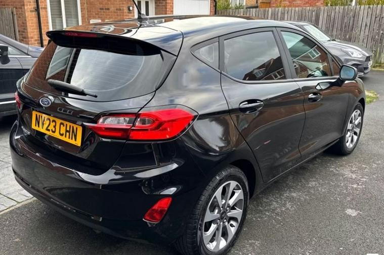 We are pleased to offer this 2023 Ford Fiesta 1.0T EcoBoost Trend Hatchback, finished in the smart and modern Agate Black. With just 14, 500 miles, this low-mileage example is an excellent choice for drivers looking for a reliable, economical, and enjoyable hatchback. Powered by Fords award-winning 1.0-litre EcoBoost petrol engine producing 100 PS, this Fiesta delivers a smooth and responsive drive while maintaining excellent fuel efficiency. The manual transmission, Euro 6 compliance, and start/stop technology help to keep running costs and emissions low, making it ideal for both city driving and longer journeys. The Trend specification includes a well-designed and comfortable interior, offering a great balance of practicality and modern technology. Key features include air conditioning, cruise control with speed limiter, lane keeping aid, traffic sign recognition, pre-collision assist, and multiple airbags for added safety. The Fiesta also benefits from Ford SYNC infotainment, Bluetooth connectivity, DAB radio, USB input, and steering-wheel-mounted controls, keeping you connected and entertained on the move. Externally, the car is fitted with 15-inch alloy wheels, LED daytime running lights, electrically adjustable door mirrors, and remote central locking. The five-door layout ensures easy access for passengers, while the practical boot space makes it suitable for everyday use. Renowned for its excellent handling, refined ride, and dependable build quality, the Ford Fiesta remains one of the UKs most popular hatchbacks. This 2023 model represents a fantastic opportunity to own a nearly new car in a timeless colour, combining style, comfort, and efficiency. Please feel free to contact us for further information or to arrange a viewing and test drive.