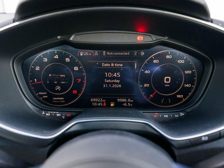 Sagitta is delighted to present for sale this stunning Audi TT 2.0 TFSI S Line Coupe in Metallic Daytona Grey with a Black Half Leather and Suede Interior with Contrast White Stitching, the car benefits from the following specifications, Bluetooth, Voice Control, Flat Bottomed Multi-Function Steering Wheel, Start-Stop System, Audi Virtual Cockpit, DAB Radio, Lane Assist, Cruise Control, Keyless Entry, Parking Sensors, S-Line Embossed Seats, 19 5 Arm Star Design Alloys, Rain Sensor, Split Folding Rear Seats, Service History at Audi at 16668 miles, at 37487 miles, and then Independents at 48, 239 miles, at 52, 969 miles, at 57, 580 miles, car will come with a Fresh Service, MOT till 29.07.2026, 2 Keys, More photos are available on our website, Part Exchange Welcome, all our cars come with a 6-month Warranty through Autoguard and 12 months of AA Roadside Assistance. Nationwide delivery is available, please contact us for a quote. Deposits can be taken over the phone. Payments can be made via bank transfer and Finance applications can be completed online. Whilst every effort is made to ensure the above details are correct, there may be some discrepancies, so please make sure to contact us for exact specifications and history on this vehicle. The vehicle specification displayed may not be exact for this vehicle. Please contact us to confirm the precise specifications.