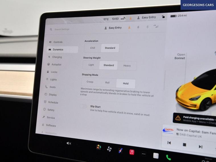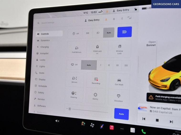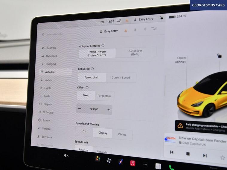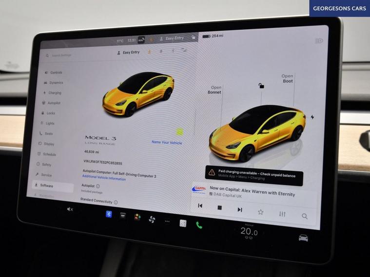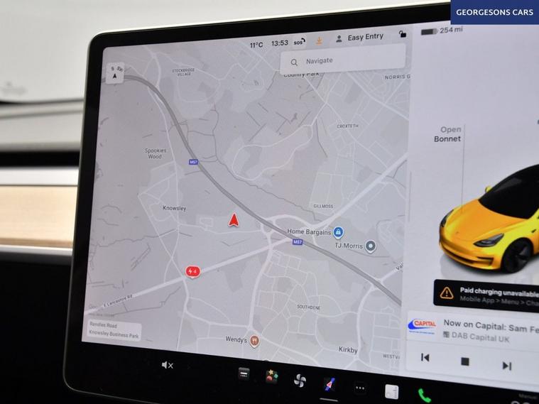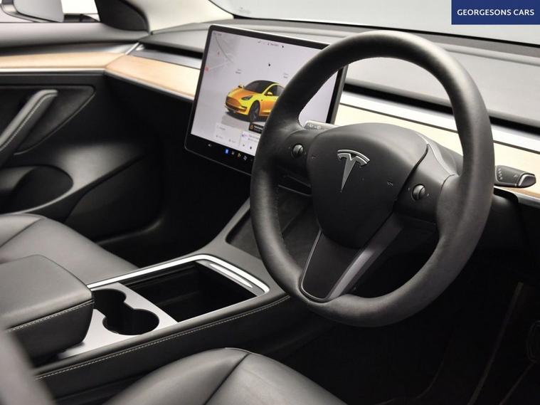 This Tesla Model 3 Long Range is a dual-motor all-electric saloon offering strong range, rapid acceleration and smooth automatic performance. With one owner from new, it delivers refined electric driving combined with Teslas advanced technology and minimalist design. It is equipped with a panoramic glass roof, satellite navigation, Bluetooth and DAB radio. Manoeuvring is assisted by a reverse camera and parking sensors. Comfort features include climate control, electric heated memory seats and a heated steering wheel. Driver assistance systems include adaptive cruise control with speed limiter, lane assist and blind spot assist, making this a highly specified and capable electric saloon.