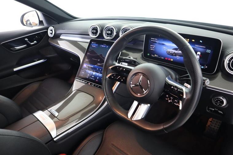 This 2023 Mercedes-Benz C Class C300e AMG Line (Premium) presents an exceptional ownership proposition with only one owner and a remarkably low mileage of 21105 miles. This Euro 6 compliant model boasts a sophisticated 2.0L petrol plug-in hybrid engine, offering an efficient and dynamic driving experience. The AMG Line trim enhances its sporty appeal, while notable features include advanced LED Digital Lamps for superior visibility, KEYLESS GO for effortless access, and Blind Spot Assist to aid your awareness on the road. Further enhancing convenience and safety, this C Class is equipped with a Parking Package featuring a 360-degree camera, making manoeuvring in tight spaces simple. Inside, you will appreciate the THERMATIC automatic climate control, allowing for personalised comfort with two distinct zones. These carefully selected features, combined with its low mileage and single owner history, clearly set this Mercedes-Benz C Class apart from other vehicles of its kind, promising a premium and well maintained ownership experience.