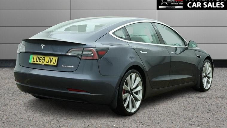 Tesla Model 3 (Dual Motor) Performance - Panoramic Roof, 360 Camera, White Leather Interior, Bluetooth - Part Service History This 2019 Tesla Model 3 Performance boasts exceptionally low mileage for its age, having covered just 42176 miles, and comes with a clear vehicle history check. As an electric vehicle with four wheel drive, it offers an impressive battery capacity of 82 kWh, providing a maximum range of 329 miles when new. This Model 3 is equipped with heated front seats, a park assist camera system including front camera, air conditioning, rear parking sensors, and Bluetooth connectivity for your convenience. Experience exhilarating performance with this Model 3, capable of accelerating from 0 to 60mph in a remarkable 3.2 seconds, a figure that sets it apart from many other vehicles. Charging is efficient, with a full charge at home taking approximately 12 hours using a 7kW charger, and a rapid charge to 80% achievable in just 26 minutes at a public charging station. These attributes demonstrate the advanced capabilities and thoughtful design of this Tesla Model 3 Performance. Combining comfort, performance and practicality, this model is ideal for business use, long-distance driving or premium daily motoring. Service History Part service history recorded as follows: Feb 2026 Nuneaton Car Sales Key Features & Specification 20 Inch Alloy Wheels Full LED Lighting Front and Rear Parking sensors / 360 camera Cruise Control Air Conditioning / Dual-Zone Climate Control Satellite Navigation DAB Digital Radio Bluetooth Connectivity USB / Voice Control ISOFIX Child Seat Mounts Driver Assistance Features Panoramic Roof Vehicle Information Registration: 28/09/2019 Mileage: 42176 miles Fuel Type: Electric Transmission: Automatic Owners: [2] HPI Status: Clear Why Buy From Nuneaton Car Sales? * Multi Award-Winning Dealership * AA Approved Dealer * NO ADMIN FEES * 12 Months AA Breakdown Cover * Multi-Point Vehicle Inspection * Free MOT if due within 6 months * Competitive Finance Available * Part Exchange Welcome * Click & Collect & Home Delivery Available * Same Day Drive Away on most vehicles Extra Peace of Mind Personalised walk-around videos available on request. All vehicles professionally prepared and valeted prior to sale. This vehicle is price-checked daily against the UK market to ensure excellent value. Every effort is made to ensure vehicle information is accurate. Specification data may be supplied by a third-party source. If a particular feature is important to your purchase decision, please contact our sales team who will be happy to confirm.