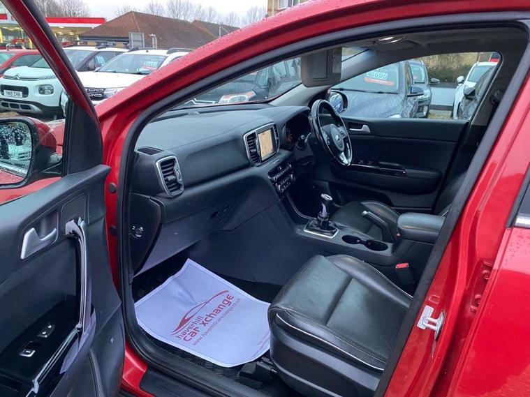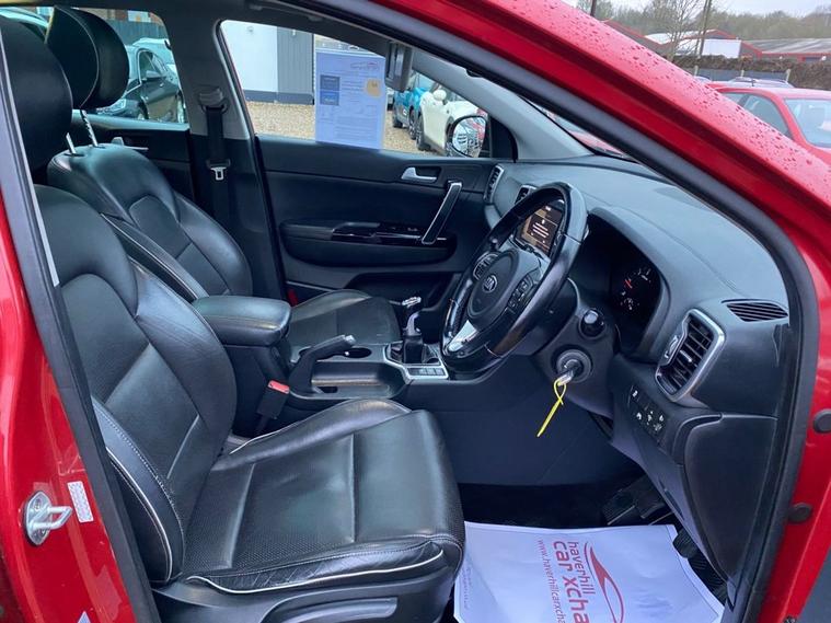 8 INCH COLOUR TOUCHSCREEN WHICH FEATURES A KIA SATELLITE NAVIGATION SYSTEM WITH EUROPEAN MAPPING+DAB RADIO+BLUETOOTH WITH VOICE RECOGNITION AND MUSIC STREAMING+DUAL ZONE CLIMATE CONTROL AIR-CONDITIONING+LUXURIOUS HEATED LEATHER UPHOLSTERY+AUTOMATIC HEADLIGHT ACTIVATION+RAIN SENSING WINDSCREEN WIPERS+PARKING ASSISTANCE WITH PARKING CAMERA+PANORAMIC GLASS ROOF+TOWBARINFRA RED PAINT+19 INCH ALLOY WHEELS. At Haverhill Car Xchange we would like to offer you our Kia Sportage SUV which has been finished in an Infra Red paint with luxurious Black HEATED Leather upholstery. Excellent Specification Includes an 8 Inch Kia Connect Satellite Navigation System which features TomTom-European Mapping and Traffic Messaging, DAB Digital Radio, Apple CarPlay/Android Auto, Bluetooth with Voice Recognition and Music Streaming, USB Charging Point, 12 Volt Power Socket, Dual Zone Climate Control Air-Conditioning, Lane Keep Assist, Gear Shift Indicator, Cruise Control with Speed Limiter, All-Round Electric Windows with Drivers Auto Up-Down Function, Body Coloured Bumpers/Door Handles/Door Mirrors, Chrome Front Grille, Panoramic Glass Roof, Luxurious Leather Heated Upholstery, Automatic Headlight Activation, LED Daytime Running Lights, Welcome and Follow-Me-Home Headlight Function, Front Fog Lights, Rain-Sensing Windscreen Wipers, Parking Assistance with Parking Camera, Leather Multifunction Steering Wheel, Tinted Windows, 19 Inch Alloy Wheels, Power Assisted Steering, Hill Start Assist, ABS Breaking System, Impact Sensing Door Unlocking, Alarm, Immobiliser, Remote Central Locking and ISOFIX Anchorage Points for Child Seats.