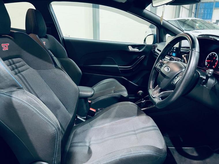 FORD FIESTA 1.5T EcoBoost ST-2 Hatchback 3dr Petrol Manual Euro 6 (200 ps) Registration: BA18JVEYear: 2018 (18)Mileage: 50, 000 miles Fuel: PetrolTransmission: ManualDrivetrain: Front Wheel Drive Colour: Performance BlueULEZ Compliant A sharp, engaging, and highly sought-after hot hatch offering outstanding performance, dynamic handling, and everyday usability. This Ford Fiesta ST-2 is powered by the award-winning 1.5T EcoBoost petrol engine producing 200 PS, paired with a slick 6-speed manual gearbox delivering an exciting and responsive driving experience. Finished in iconic Performance Blue, this example benefits from a strong factory specification with £1, 945 of additional extras, including the desirable ST Performance Pack and striking 18-inch Magnetic alloy wheels freshly refinished in Gloss Black, giving the vehicle superb road presence and enhanced driving capability. This well-presented example has covered 50, 000 miles and offers an excellent balance of performance, practicality, and modern technology. Optional Extras Performance Blue Premium Paint £745 ST Performance Pack £950 18 Magnetic Alloy Wheels Freshly Finished in Gloss Black £250 Total Value of Factory Fitted Extras: £1, 945 Key Features 1.5T EcoBoost petrol engine producing 200 PS 6-speed manual transmission ST sports suspension and chassis setup ST-2 interior and exterior styling Recaro part-leather sports seats SYNC 3 touchscreen infotainment system Satellite navigation Apple CarPlay and Android Auto DAB digital radio and Bluetooth connectivity Selectable drive modes Sports flat-bottom multifunction steering wheel Rear privacy glass LED daytime running lights Air conditioning Cruise control and speed limiter Keyless start Additional Information Euro 6 petrol ULEZ compliant Highly regarded performance hot hatch 50, 000 miles Desirable ST Performance Pack specification Iconic Performance Blue finish Outstanding blend of fun, practicality, and everyday usability