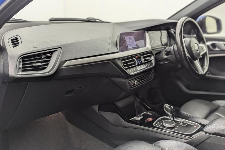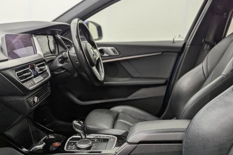 Henson Car Store presents the BMW 1 SERIES 1.5 118i M Sport Hatchback 5dr Petrol DCT Euro 6 (s/s) finished in Blue, this car comes with service history. This 2020 BMW 1 Series 118i M Sport is a superb example, having been owned by just one individual since new. This Euro 6 compliant model boasts a responsive 1.5 litre petrol engine and comes in the desirable M Sport trim. Inside, youll find the comfort of perforated Dakota leather upholstery in black with a striking blue highlight, along with seat heating for both the driver and front passenger. The BMW Live Cockpit Plus system, which includes Bluetooth connectivity for audio streaming with compatible devices, ensures you stay connected and entertained on every journey. The M Sport variant offers a dynamic driving experience, with the 118i accelerating from 0 to 60 miles per hour in a brisk 8.5 seconds. Practicality is also a strong point, featuring large boot space perfect for luggage or shopping. Furthermore, the inclusion of a rain sensor with automatic headlight activation adds convenience and safety, ensuring optimal visibility in varying weather conditions. These elements combine to make this BMW 1 Series a compelling choice for those seeking a well appointed and engaging compact car. Stock Number 083