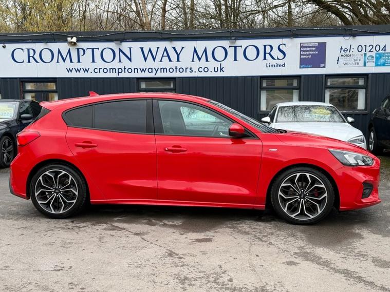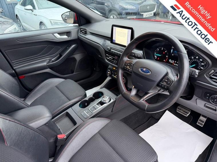 This 2018 Ford Focus ST-Line X presents an exceptional opportunity with its remarkably low mileage of just 40, 998 miles for its age. This Euro 6 compliant 1.5L diesel model boasts a full service history, ensuring its provenance is well documented. As an ST-Line X variant, it comes equipped with desirable features such as front and rear parking sensors with parking assistance, heated front seats for added comfort, and the Ford SYNC3 DAB navigation system which includes Android Auto and Apple CarPlay for seamless smartphone integration. Additionally, the DEATC dual-zone electronic automatic temperature control ensures a comfortable cabin environment for all occupants. Further enhancing its appeal, this Focus ST-Line X comes with a 6-month warranty for your peace of mind and a 12-month MOT provided on purchase, confirming its road worthiness. The combination of its efficient 1.5L diesel engine, advanced SYNC3 system, and practical parking aids positions this vehicle as a superior choice compared to other models in its class. Its well maintained condition and comprehensive feature set make it a compelling option for anyone seeking a reliable and well equipped hatchback.