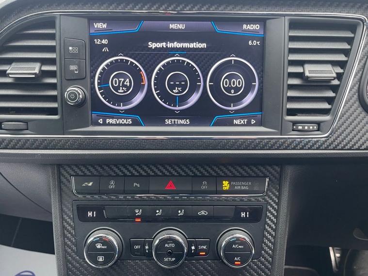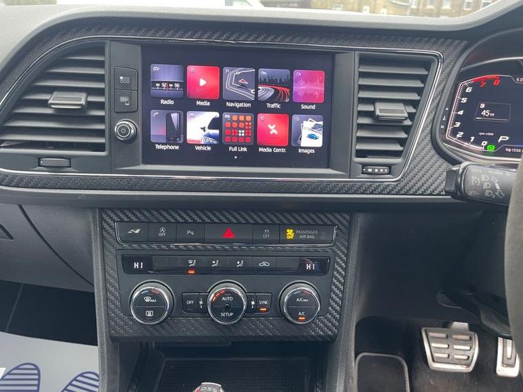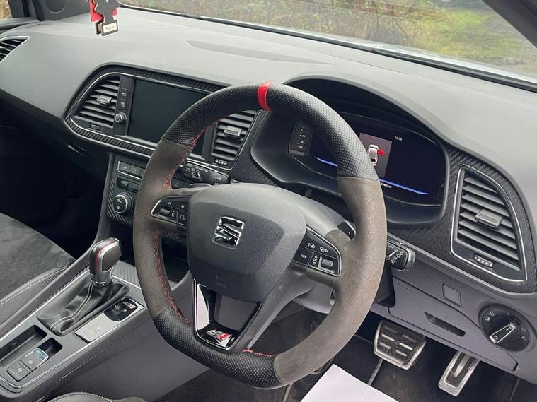 SEAT LEON 2.0 TSI CUPRA 290 HATCHBACK 5DOOR PETROL DSG EURO 6 , GENUINE 85887 MILES WITH AN EXCELLENT SERVICE RECORD, 6 MONTHS WARRANTY INCLUDED, DSG GEAR BOX OIL CHANGED AT 66043, X2 KEYS, LED HEAD LIGHTS, FRONT AND REAR SENSORS, MAXTON BODY KIT, 19 ALLOYS, POWER FOLD MIRRORS, PRIVACY SUN PROTECTION GLASS, TWIN EXHAUST, VIRTUAL COCKPIT/DIGITAL DASH, AUTO LIGHTS/WIPERS, VOICE COMMAND, MULTI FUNCTION STEERING WHEEL WITH F1 STYLE PADDLE SHIFT, APPLE CAR PLAY, ANDROID AUTO, MIRROR LINK, SATELLITE NAVIGATION, DAB DIGITAL RADIO, BLUE TOOTH, START/STOP, DUAL CLIMATE CONTROL WITH A/C, MULTIPLE DRIVE MODES INCLUDING COMFORT/SPORT/CUPRA/AND INDIVIDUAL, CUPRA EMBOSSED HALF LEATHER/SUEDE SPORTS SEATS, ELECTRIC HANDBRAKE AND ISOFIX.