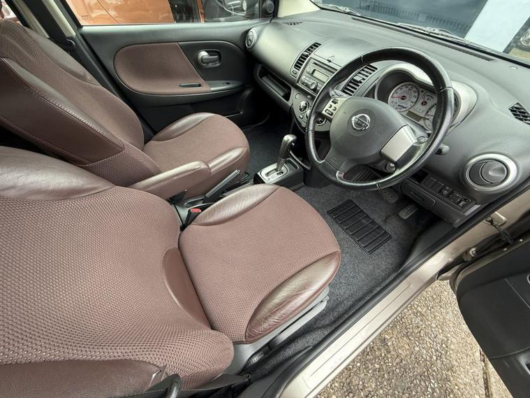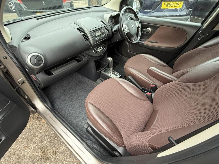 This Note comes with a 1.6 petrol engine and an automatic gearbox. It has 17 services, last one done in our garage. Automatic headlights (light sensor), automatic wipers, phone Bluetooth connectivity, tinted rear windows, automatic climate control.