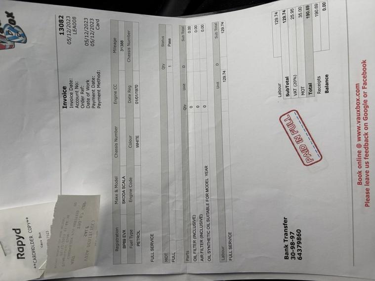 This 2019 Skoda Scala TSI SE L boasts a clear vehicle history check, offering you peace of mind. This Euro 6 compliant 1.0 litre petrol model comes with an MOT valid until December 2026. It features Keyless Entry and Start-Stop System with SAFE System, SmartLink including Android Auto and Apple CarPlay, and basic LED headlights with LED daytime running lights. Enjoy the convenience of Wireless SmartLink for Apple CarPlay and Bluetooth connectivity. The Skoda Scala TSI SE L is designed for an engaging drive, accelerating from 0 to 60mph in just 9.5 seconds. Its low CO2 emissions highlight its efficiency, making it a more economical choice compared to similar vehicles. This combination of performance, modern technology, and cost effective motoring makes this Scala a compelling option.