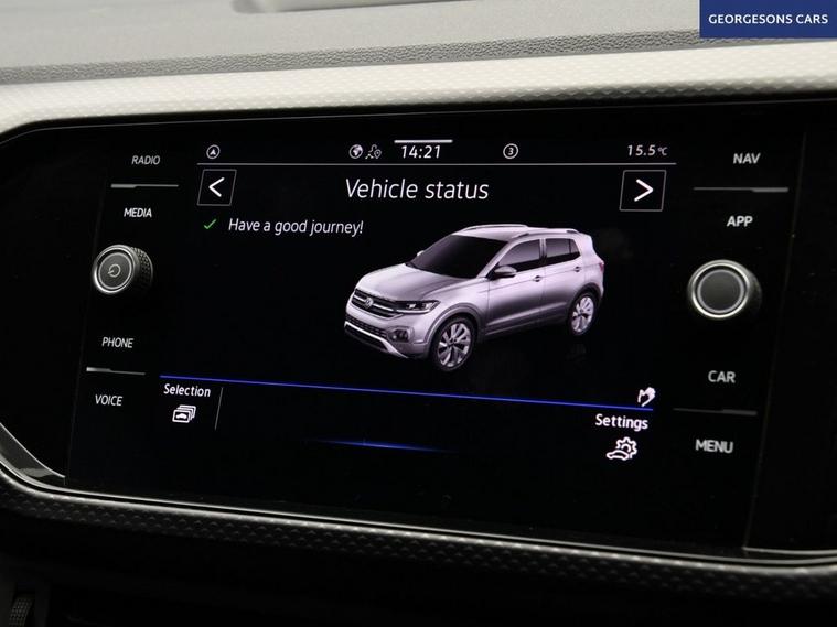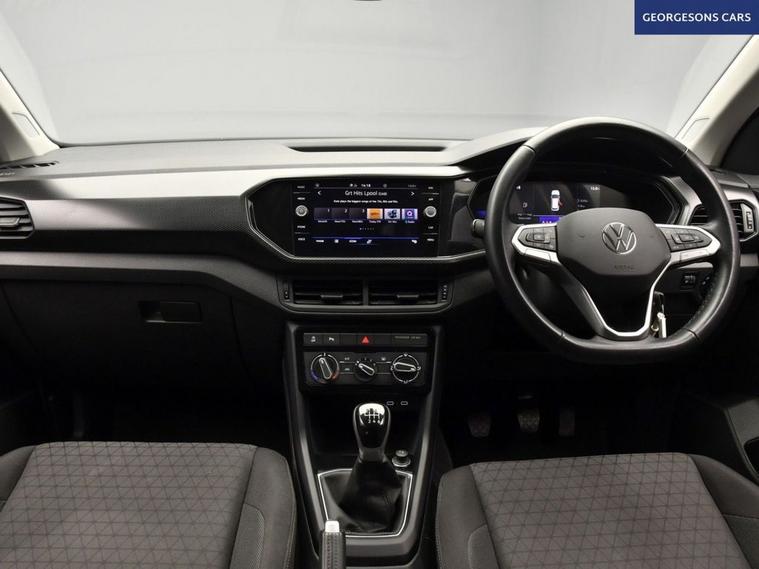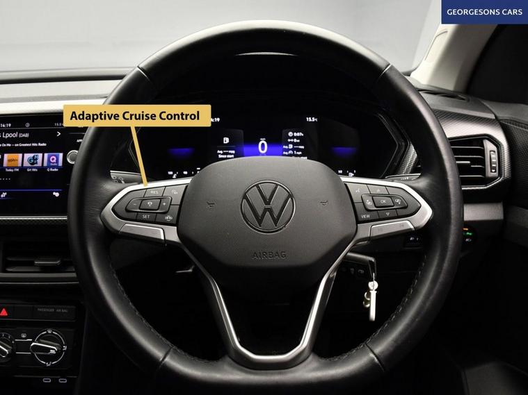 The Volkswagen T-Cross 1.0 TSI SE combines a lively 1.0-litre turbo petrol engine with 110hp, delivering 0-62mph in 10.8 seconds and up to 51.4mpg in this front-wheel-drive setup with a precise 6-speed manual transmission. The SE trim offers practical premium features with 17-inch alloy wheels and a spacious interior for versatile compact SUV driving. With three services, this T-Cross is in excellent condition. Navigate effortlessly with Apple CarPlay, Bluetooth and DAB radio, ensuring seamless connectivity on every journey. Parking is a breeze thanks to the parking sensors, providing confidence in tight spaces. Stay comfortable with air conditioning, offering personalised cooling year-round. Adaptive cruise control with speed limiter, lane assist and blind spot assist enhance safety and relaxation on highways. The spacious five-door SUV design includes a 455-litre boot for practicality.