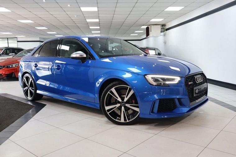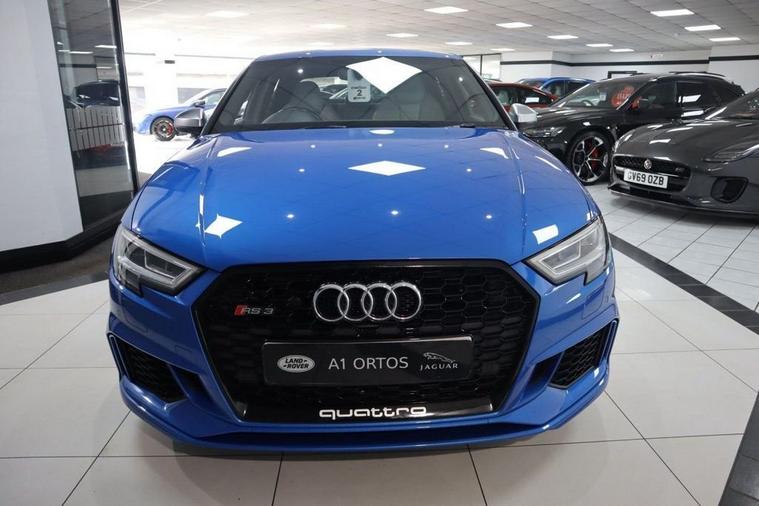 STUNNING 8Y RS3 JUST ARRIVED INTO STOCK! GENUINE LOW MILES COVERING 23K MILES FROM NEW BACKED WITH FULL SERVICE HISTORY! IMPRESSIVE CONDITION, NOT TO BE MISSED! FIVE CYLINDERS AND 400PS ON TAP! PREMIUM PERFORMANCE SALOON! FINISHED IN ARA BLUE CRYSTAL! SPEC INCLUDES, COMFORT/SOUND PACKAGE, BANG AND OLUFSEN PREMIUM SOUND SYSTEM, REAR VIEW CAMERA, UPGRADED 19 INCH BLADE DESIGN ALLOY WHEELS, BLACK EXTERIOR STYLING PACKAGE, BLACK FINE NAPPA LEATHER EMBOSSED SEATS, HEATED FRONT SEATS, AUDI VIRTUAL COCKPIT DISPLAY, AUDI BRAKES SYSTEM, AUDI DRIVE SELECT, SPORT CONTOUR LEATHER/ALCANTARA MULTI FUNCTION FLAT BOTTOM STEERING WHEEL, HEATED FRONT SEATS, PARKING AID PLUS, LED HEADLIGHTS, CRUISE CONTROL, RS SPORTS SUSPENSION, AUDI SMARTPHONE INTERFACE (ANDROID AUTO AND APPLE CARPLAY), PRIVACY GLASS, HOLD ASSIST! RARE, VERY SOUGHT AFTER INCREDIBLE EXAMPLE, EARLY VIEWING IS ESSENTIAL TO AVOID DISAPPOINTMENT, COMPREHENSIVE WARRANTY OPTIONS AVAILABLE , AA BREAKDOWN AVAILABLE STUNNING SHOWROOM CONDITION, MUST BE SEEN NOT TO BE MISSED, FIRST TO SEE WILL BUY, BE VERY QUICK THIS GEM WILL SOON GO!, VIEW MORE PICS ON OUR WEBSITE, PLEASE CALL FOR FULL SPEC, SIMPLY STUNNING!
