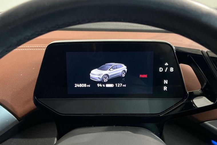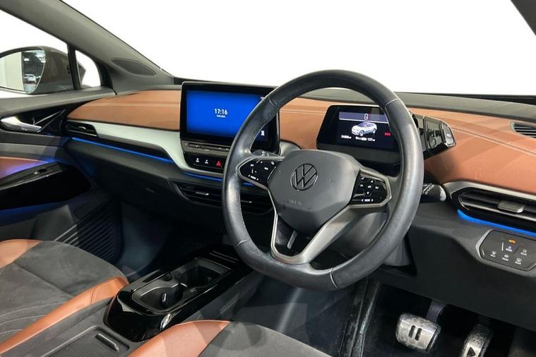 This 2021 Volkswagen ID.4 Pure City is a remarkably low mileage example, having covered just 24, 804 miles, with its MOT valid until September 2026 and a clear vehicle history check. This electric vehicle boasts a 55 kWh battery offering a maximum range of 213 miles when new. Charging is convenient, with a full charge at home taking approximately 7 hours and 30 minutes using a 7kW charger, while rapid public charging can take it from empty to 80% in just 38 minutes. The ID.4 Pure City comes equipped with a host of desirable features that enhance your driving experience. Enjoy effortless access and ignition with the Keyless Entry, Opening, and Start system. The Comfort Pack adds climate control, heated seats, and a heated steering wheel for year round comfort, while the Driver Assistance Pack includes front and rear parking sensors to aid manoeuvrability. Further enhancing safety and convenience are LED headlights with automatic switching and LED tail lights, alongside Smart Adaptive Cruise Control and a rain sensor. This model also benefits from a large boot space, making it a practical choice for everyday use and longer journeys.
