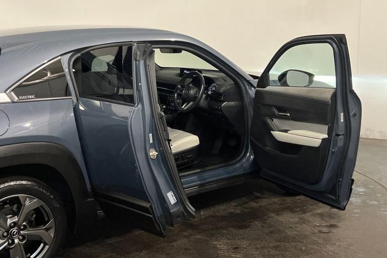 This 2021 Mazda MX-30 First Edition boasts exceptionally low mileage, having covered just 15097 miles, and has been cherished by a single owner since new. As an all electric model, it offers a 36 kWh battery with a maximum range of 124 miles when new, and can be fully charged at home using a 7kW charger in approximately 5 hours. For quicker top ups, public charging can take it from empty to 80% in as little as 48 minutes. This vehicle comes with an MOT valid until November 2026 and has a clear vehicle history check, providing peace of mind. The First Edition trim level is well equipped with notable features designed to enhance your driving experience. Enjoy seamless smartphone integration with Apple CarPlay and Android Auto, and stay connected on the go with integrated Bluetooth. Parking is made easier with front and rear parking sensors, complemented by dusk sensing automatic headlights that illuminate the road ahead when needed. The emergency lane keeping system, which includes blind spot assistance, further adds to the vehicles safety credentials, setting it apart from other similar models.