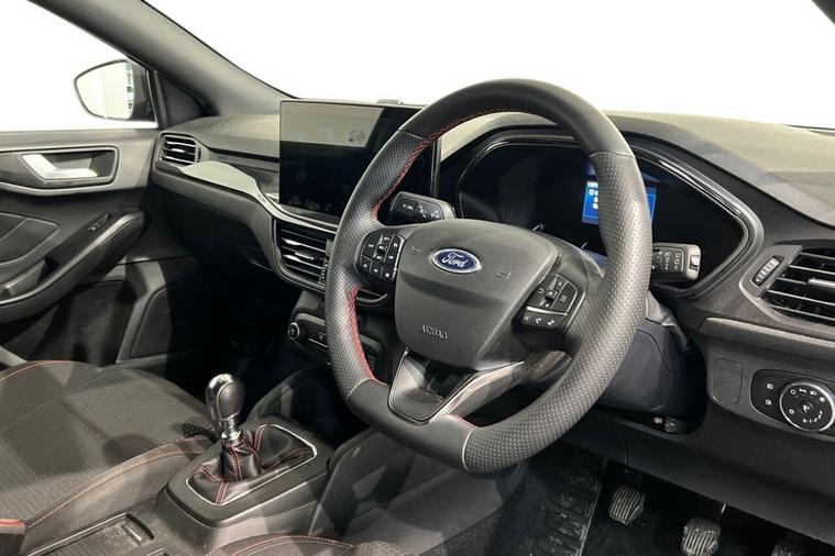 This 2023 Ford Focus T ST-Line presents an exceptional ownership proposition with its remarkably low mileage of just 13074 miles. This Euro 6 compliant 1.0 litre petrol model, registered in 2023, has had only one owner from new. It boasts the sporty ST-Line trim and comes equipped with a comprehensive Parking Pack, featuring front and rear parking sensors along with a rear camera for effortless manoeuvring. Inside, youll find the convenience of Dual-Zone Electronic Automatic Temperature Control for personalised comfort, and the advanced Ford SYNC4 Navigation system with a generous 13.2 inch touchscreen, compatible with both Android Auto and Apple CarPlay. The Ford Key Free System ensures seamless keyless entry and start. The Ford Focus T ST-Line offers impressive efficiency, achieving a highlight fuel economy of 52 miles per gallon, which is notably better than many comparable vehicles. Its low CO2 emissions further contribute to its appeal, making it an environmentally conscious choice. Practicality is also a strong point, with ample boot space designed to accommodate your needs. This combination of low mileage, excellent fuel economy, and thoughtful features makes this Focus a standout option for those seeking a well maintained and highly capable hatchback.