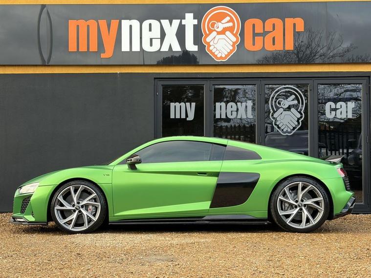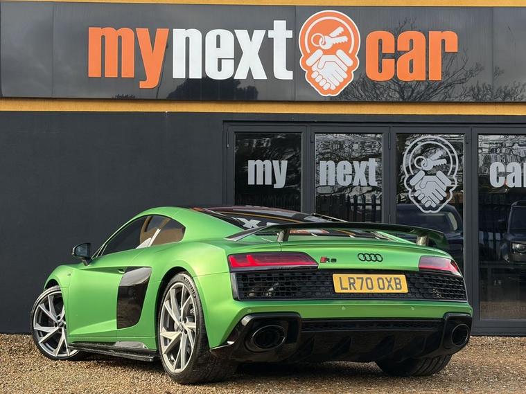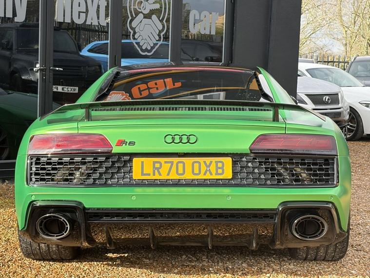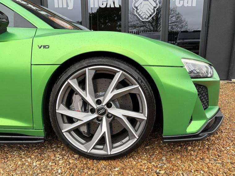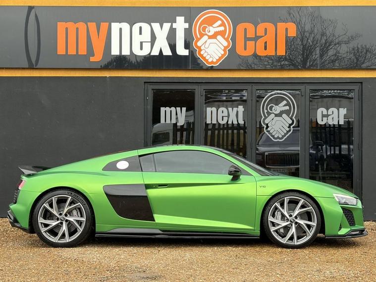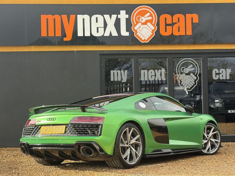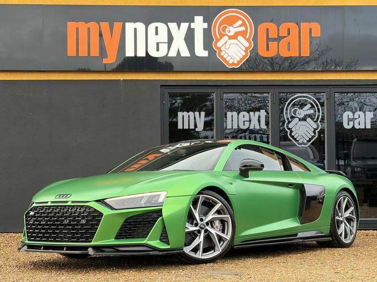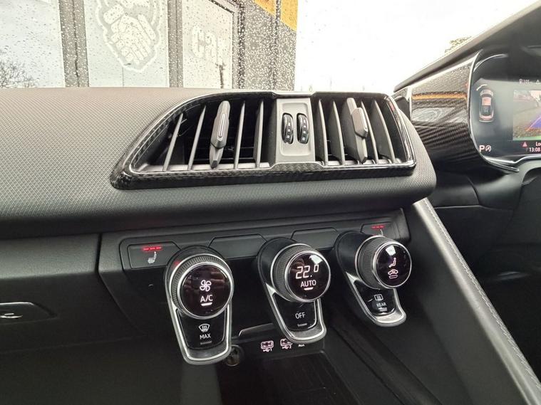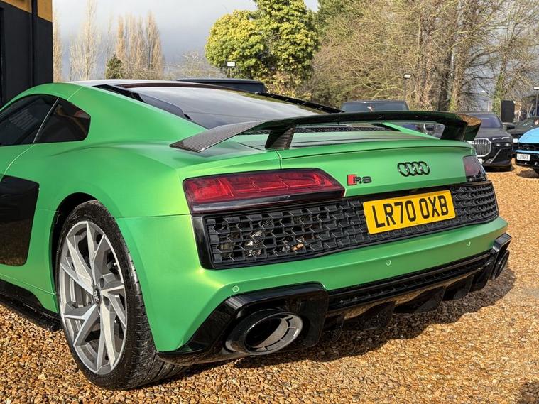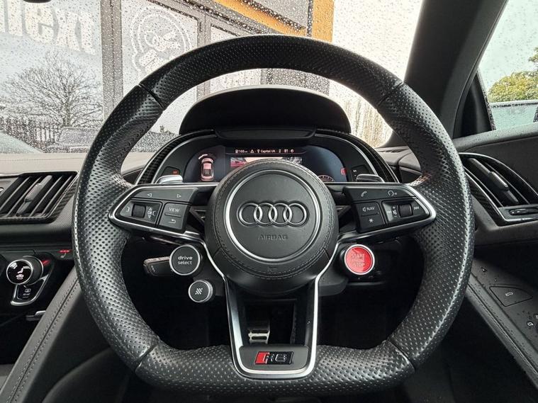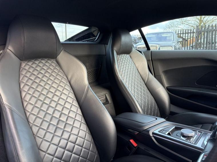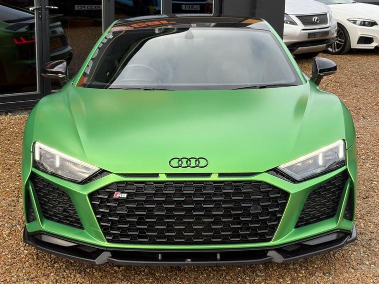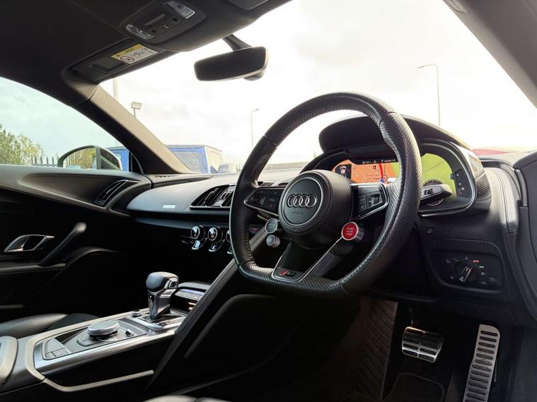 Features: SUZUKA GREY, ASF - AUDI SPACE FRAME, BRAKE CALIPERS - GLOSS BLACK, ELECTRIC WINDOWS - FRONT, LOCKING WHEEL BOLTS, TYRE REPAIR KIT, ADVANCED KEY WITH SAFELOCK, AIRBAGS - DRIVER, AIRBAGS - FRONT PASSENGER, PARKING SYSTEM PLUS, SEAT BELT MONITORING, AMI - AUDI MUSIC INTERFACE, AUDI BEAM, AUDI DRIVE SELECT, BLACK PACK, PPF, CARBON WING, REVERSE CAMERA, R8 SPORT SEATS, BLACK BADGES, REAR PERFORMANCE LIGHTS, GREY CALLIPERS, VIRTUAL COCKPIT, DYNAMIC PACK, BLUETOOTH, SAT NAV, HEATED SEATS, ELECTRIC SEATS, CARBON INLAYS, AUX PORT, TWO USB CHARGING PORTS, PUSH TO START, DRIVE SELECT, PADDLE SHIFTERS, CUSTOMER VIEWINGS, APPOINTMENTS.R8 V10 Plus Sport Suspension - Reversing Camera - Seat Belt Monitoring - Sideblades - Matt Titanium - Single-Frame Radiator Grille with Honeycomb Design in Matt Anthracite Grey - Tracking System Preparation - Tyre Pressure Warning Light - Wave Disc Brakes - quattro Badging on Dash - Suzuka Grey - Metallic Paint - Fine Nappa Leather - R8 Sports Seats with Stitched Diamond Design - Black - Electric front seats with memory function - ISOFIX Child Seat Mounting for Front Passenger with Airbag Deactivation 12 Month warranty available. Finance options available. Major credit/debit cards accepted. 5.2 FSI V10 Performance S Tronic quattro Euro 6 (s/s) 2dr Features: 20in Alloy Wheels - 5-V Spoke Evo Design Cast Aluminium in Matt Titanium look, ABS - Anti-Lock Braking System, AMI - Audi Music Interface, ASF - Audi Space Frame, Airbags - Driver, Airbags - Front Passenger, Airbags - Front Side with Curtain, All-LED Headlights, Anti Theft Alarm and Immobiliser, Anti Theft Locking Wheel Bolts, Audi Beam, Audi Connect, Audi Drive Select, Audi Phone Box with Wireless Charging, Audi Smartphone Interface, Audi Sound System, Audi Virtual Cockpit, Auto-Dimming Rear-View Mirror, Brake Calipers - Gloss Black, Ceramic Brakes, Complete Protective Cover, Cruise Control, Deluxe Automatic Air Conditioning, Door Mirrors - Matt Titanium, Door Sill Trims with Aluminium Inlays and R8 Logo on the Door Sills, Dual-Branch Oval Twin Tailpipes in Chrome Finish, Electric Windows - Front, Exhaust Tailpipe - Gloss Black Oval, Extended Inlays in Gloss Carbon, Exterior Mirrors Electrically Adjustable Heated Folding and Automatically Dimming with Integrated LED Indicator, First Aid Kit and Warning Triangle, Heated Front Seats, High-Beam Assist, Hill Hold Assist, Interior Light Package, LED Rear Lights and Dynamic Rear Indicators, Large Fixed Rear Spoiler in Gloss Carbon, Light and Rain Sensor, MMI Navigation Plus including MMI Touch, Matt Titanium Front Spoiler Lip and Rear Diffuser, Matt Titanium Styling - Grille and Air Inlets, Parking System Plus - Front and Rear Sensors, Pedals in Stainless Steel, Power Steering, R8 3-Spoke - Flat Bottomed - Multifunctional - Perforated Performance Leather Steering Wheel with 3 Operating Satellites including Performance Mode, R8 V10 Plus Sport Suspension, Reversing Camera, Seat Belt Monitoring, Sideblades -