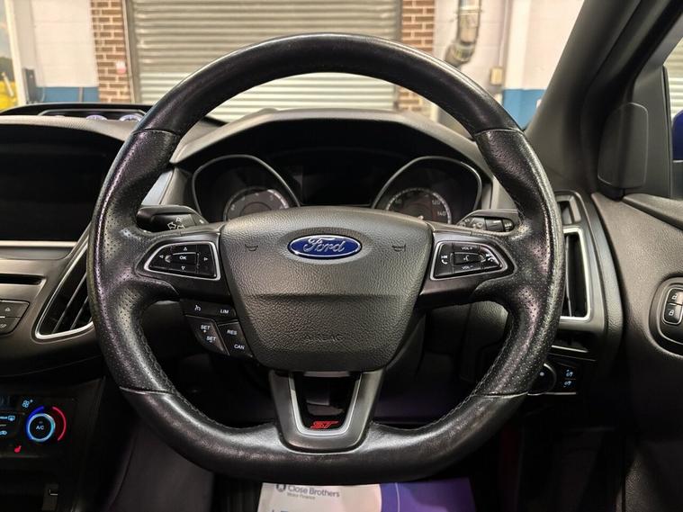 Scotts of Leeds used Car Sales are pleased to offer this FORD FOCUS 2.0T EcoBoost ST-3 Hatchback 5 Door Petrol Manual in Blue. The car is in good condition throughout, in a lovely colour combination and a great specification including Satellite Navigation, Cruise control, Speed limiter, DAB radio, Bluetooth, apple carplay, USB point, CD player, Rear parking sensors, Heated leather seats, automatic lights, alloy wheels, privacy glass, Electric windows, Pushbutton start, isofix and much much more. The car will be supplied with an up to date service record including 8 services having just been serviced in our Workshop, an MOT until September 2026 and 2 Keys ready to drive away. 3 MONTH NATIONWIDE WARRANTY provided with all vehicles. NATIONWIDE DELIVERY also available. A guaranteed 12 Months MOT can be added for an extra £100. DISCLAIMER: The above specification is true and correct. Any other specification listed elsewhere can sometimes be incorrect. Please check with Sales Executive to clarify this if needed prior to purchase.