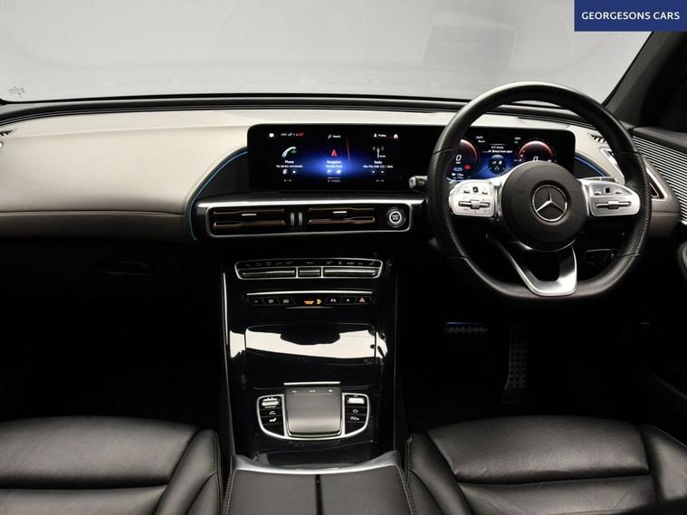 The Mercedes-Benz EQC 400 AMG Line (Premium Plus) combines dual electric motors with 408hp, delivering 0-62mph in 5.1 seconds and up to 255 miles WLTP range in this all-wheel-drive 4MATIC setup with a smooth single-speed automatic transmission. The top-spec Premium Plus trim elevates luxury with electric c sunroof, 360-degree camera, head-up display, and full executive features. With one owner and four services, this EQC is in excellent condition. Enjoy the airy cabin with the electric sunroof and ambient lighting, while pre-entry climate control pre-cools or heats the interior before you enter. Stay connected with Apple CarPlay, Bluetooth, DAB radio and satellite navigation. Parking is effortless with 360-degree camera, parking sensors and reverse camera. Stay comfortable with dual-zone climate control and electric heated memory front seats. Adaptive cruise control with speed limiter, lane assist and blind spot assist enhance safety and relaxation on highways. The spacious five-door SUV includes a 500-litre boot for practicality.