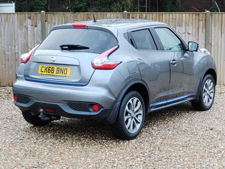 This 2018 Nissan Juke DIG-T Tekna is presented with a clear vehicle history check, offering you peace of mind. This stylish hatchback is equipped with a 1.2 litre petrol engine and meets Euro 6 emissions standards. Inside, youll find comfortable heated front seats, automatic climate control with a pollen filter, and automatic headlights that activate with the dusk sensor. For added convenience and safety, this Tekna model also includes Blind Spot Warning with Blind Spot Assistance and a colour reversing camera to aid with parking. The Nissan Juke DIG-T Tekna stands out with an impressive fuel economy of 50 miles per gallon, indicating its efficiency on longer journeys. Furthermore, its low insurance group and low CO2 emissions highlight its cost effectiveness and environmental consideration compared to many other vehicles in its class. This combination of practical features and economic benefits makes this Juke a sensible choice.