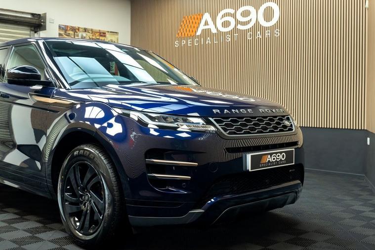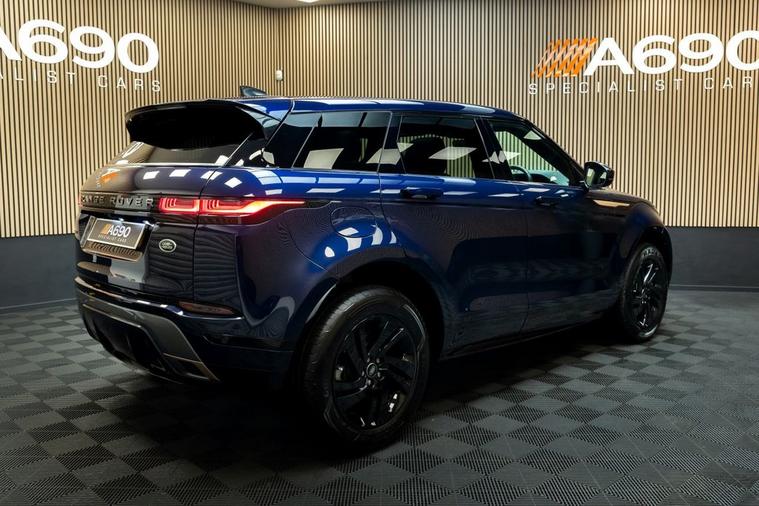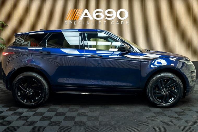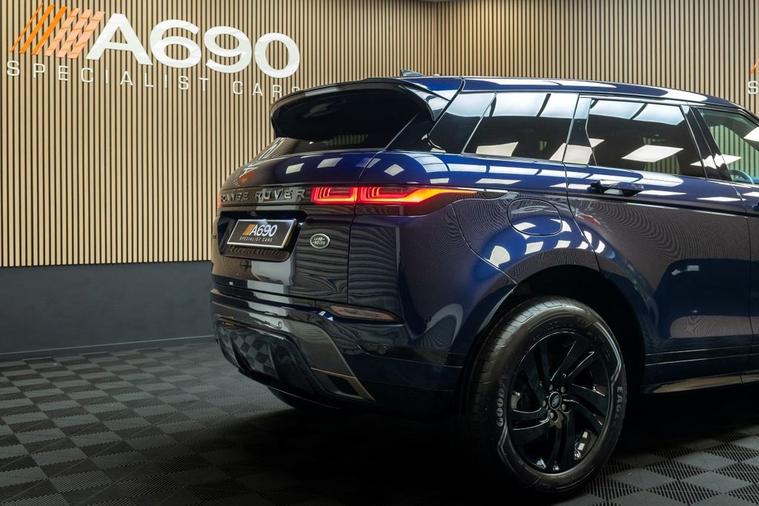 A690 Specialist cars is proud to present this stunning 2021 Range Rover Evoque 2.0 P250 R-Dynamic S SUV finished in Portofino Blue. Experience bold design, exhilarating performance, and cutting-edge technology with this Range Rover Evoque a premium compact SUV that perfectly balances luxury and capability. Under the bonnet, the powerful 2.0 P250 petrol engine with Mild Hybrid (MHEV) technology delivers an impressive blend of performance and efficiency. Producing strong, responsive acceleration through a smooth automatic transmission, this Evoque offers refined power whether cruising on the motorway or navigating city streets. The advanced mild-hybrid system intelligently recovers energy during deceleration, enhancing efficiency while maintaining the dynamic drive you expect from Range Rover. With All-Wheel Drive capability, it provides assured handling and confidence in all conditions. The R-Dynamic S trim enhances the Evoques unmistakable presence with sport-inspired styling details, full panoramic glass roof, exterior black style including 18 striking gloss black alloy wheels, and a sleek, contemporary silhouette. Its flush deployable door handles and signature LED lighting complete the sophisticated, modern look. Step inside and discover a beautifully crafted interior designed around comfort and connectivity. Premium materials, supportive sports seats, and a minimalist cabin layout create a luxurious yet practical space. The intuitive Pivi Pro infotainment system with touchscreen display offers seamless access to navigation, smartphone integration including Apple CarPlay and Android Auto, and a high-quality sound system for an immersive driving experience. Equipped with a suite of advanced driver assistance features such as front and rear parking sensors, rear view camera, cruise control, lane keep assist, and autonomous emergency braking, this Evoque prioritises your safety and convenience at every turn. Stylish, versatile, and packed with technology, this Range Rover Evoque P250 MHEV R-Dynamic S is the perfect choice for drivers seeking premium comfort with dynamic performance. Contact us today to arrange your viewing and test drive.