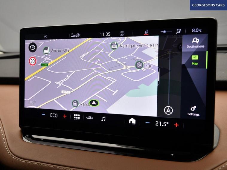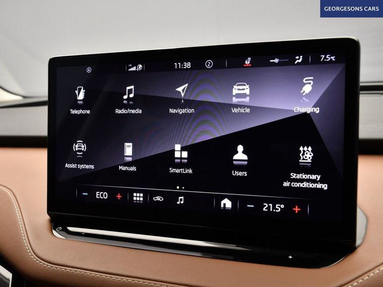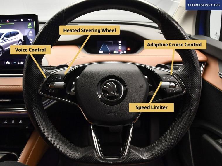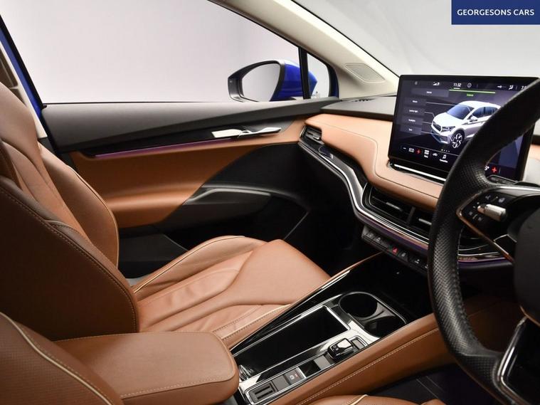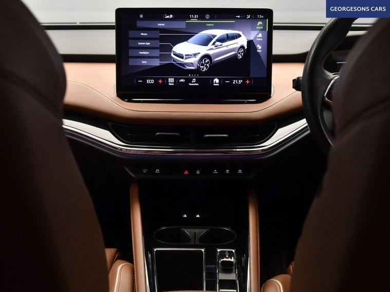The koda Enyaq 62kWh 60 Nav ecoSuite combines an efficient electric motor with 179hp, delivering 0-62mph in 8.5 seconds and up to 249 miles WLTP range in this rear-wheel-drive setup with a smooth single-speed automatic transmission. The ecoSuite trim offers premium comfort with 19-inch alloy wheels, sustainable interior materials and a spacious cabin for refined electric SUV motoring. With one owner and three services, this Enyaq is in excellent condition. Navigate effortlessly with integrated satellite navigation, Apple CarPlay, Bluetooth and DAB radio, ensuring seamless connectivity on every journey. Ambient lighting creates a sophisticated interior atmosphere, while parking is a breeze thanks to the parking sensors, providing confidence in tight spaces. Stay comfortable with dual-zone climate control, offering personalised cooling year-round, and a heated steering wheel for added warmth. Lane assist enhances safety and relaxation on highways. The spacious five-door SUV design includes a 585-litre boot for practicality.