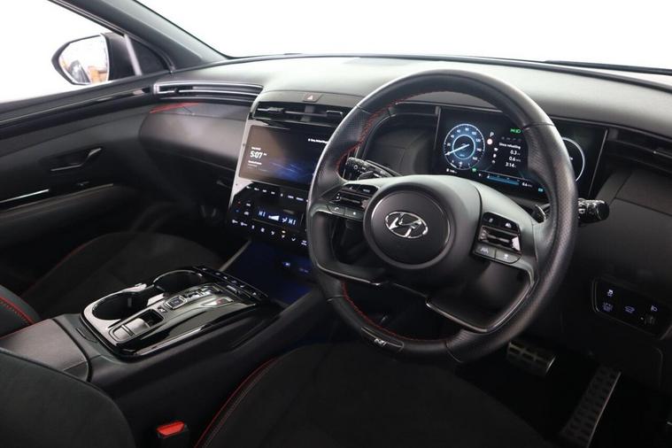This 2023 Hyundai TUCSON h T-GDi N Line S is a superb example, having had only one owner since new. This stylish SUV boasts a 1.6 litre petrol hybrid engine, meeting Euro 6 emission standards. Inside, you'll find a wealth of comfort and convenience features, including heated front seats and a heated steering wheel for those colder journeys. Connectivity is seamless with Android Auto integration, and for added safety and ease, it comes equipped with Blind Spot Collision Avoidance Assist and a rear view parking camera. The TUCSON N Line S offers a compelling driving experience, highlighted by its brisk 0-62mph acceleration in just 8.0 seconds, demonstrating its performance advantage over many similar vehicles. Its generous boot space ensures practicality for all your needs, while its position in a low insurance group makes it an economical choice. This combination of performance, practicality, and cost effectiveness makes this Hyundai TUCSON a standout option.