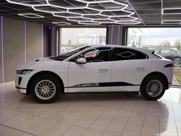 This 2019 Jaguar I-PACE 400 S has been well cared for by its one former keeper and has a service history is presented with a clear vehicle history check, offering peace of mind for its next owner. As an electric vehicle, it boasts a substantial 90 kWh battery, providing a maximum range of 292 miles when new. This Four Wheel Drive model, in its S trim, comes equipped with a suite of desirable features including a Meridian Sound System for an immersive audio experience, LED headlights for enhanced visibility, and a rear camera to aid with parking. Keyless entry adds convenience, while the 2-Zone Climate Control ensures comfort for all occupants. The Jaguar I-PACE 400 S offers impressive performance, accelerating from 0-60mph in just 4.5 seconds, a figure that sets it apart from many other vehicles. Its electric powertrain delivers this rapid acceleration smoothly and quietly. For practicality, it features a large boot space, making it suitable for everyday needs and longer journeys. Charging is also convenient, with a full charge at home taking approximately 12 hours and 36 minutes on a 7kW charger, and a rapid charge from empty to 80% achievable in just 50 minutes at a compatible public charging station.