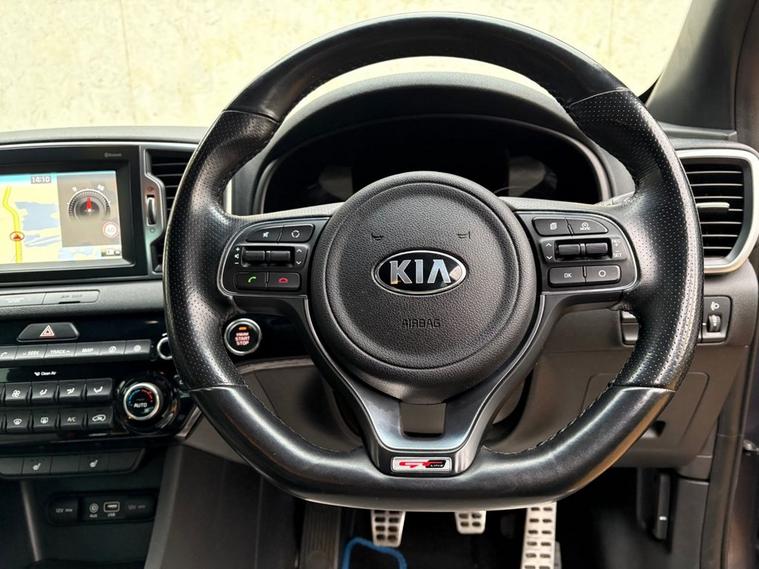 THIS WELL PRESENTED KIA SPORTAGE FINISHED IN GREY METALLIC. THIS VEHICLE COMES WITH FULL SERVICE HISTORY, 2 KEYS AND FEATURES INCLUDING, TOUCHSCREEN SATELLITE NAVIGATION, BLUETOOTH HANDS-FREE, DUAL CLIMATE CONTROL WITH AIR CONDITIONING, FULL LEATHER TRIM, HEATED FRONT SEATS, FRONT AND REAR PARKING SENSORS WITH REVERSING CAMERA, DAB DIGITAL RADIO WITH AUX AND USB POINT, BLUETOOTH MEDIA CONNECTIVITY, MUTLI FUNCTION FLAT BOTTOM LEATHER STEERING WHEEL, CRUISE CONTROL, LANE ASSIST, AUTO LIGHTS, AUTO WIPERS, 4 X ELECTRIC WINDOWS, ELECTRIC POWER FOLD MIRRORS, KEYLESS START/STOP, KEYLESS START/STOP, REMOTE CENTRAL LOCKING, 6 SPEED MANUAL GEARBOX, DRIVERS HEIGHT ADJUSTER AND 19 ALLOY WHEELS.
