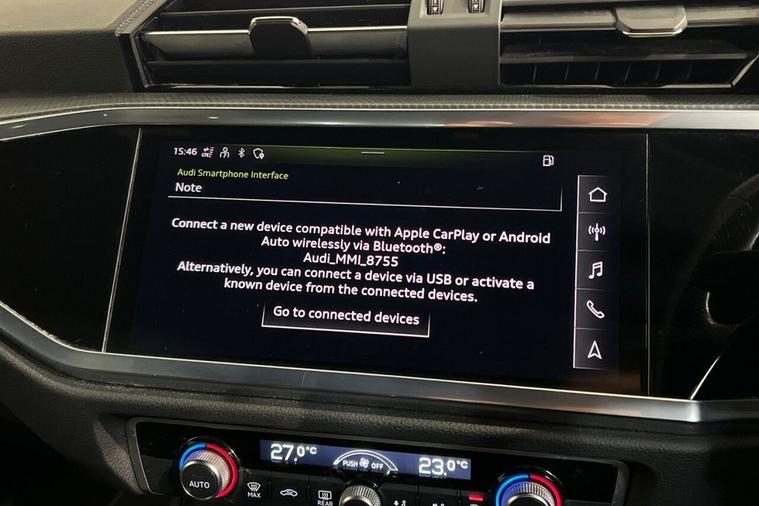 This 2022 Audi Q3 TFSI S line boasts a clear vehicle history, offering you peace of mind. This stylish SUV features a 1.5 litre petrol engine, meeting Euro 6 emissions standards, and its MOT is valid until June 2026. Inside, youll find the convenience of the Audi Smartphone Interface, which includes wireless Apple CarPlay and Android Auto, alongside dual zone electronic climate control to keep everyone comfortable. The car also benefits from LED headlights with distinctive LED daytime running lights, and a light and rain sensor for automatic headlight activation. Experience responsive performance with the Q3s 0-60mph acceleration in just 9.1 seconds, demonstrating its capability. The inclusion of a Bluetooth interface further enhances your connectivity on the go. These features collectively highlight how this Audi Q3 offers a refined and well equipped driving experience compared to other vehicles in its class.