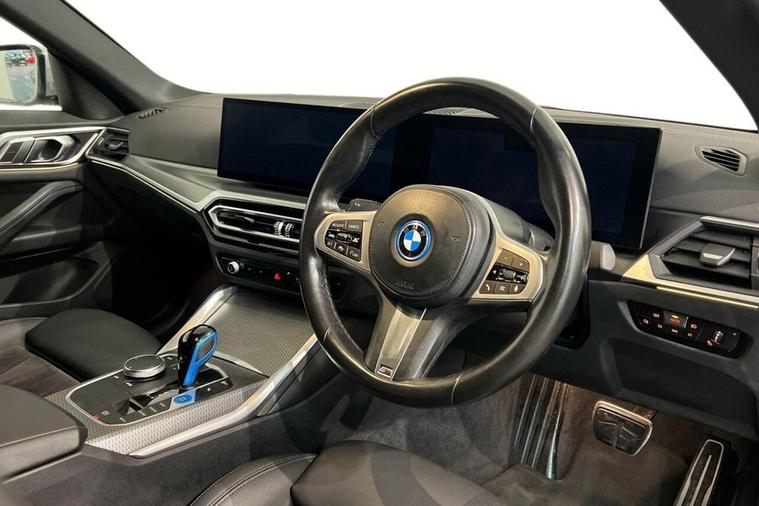 This 2022 BMW i4 40 M Sport, with only one owner and a clear vehicle history check, offers a compelling blend of electric performance and premium features. As an electric vehicle, it boasts an impressive battery total capacity of 84 kWh, providing a maximum range of 351 miles when new. This model benefits from the M Sport trim, enhancing its dynamic appeal. Inside, youll find the BMW Live Cockpit Plus with Bluetooth connectivity, automatic air conditioning for optimal climate control, and front heated seats for added comfort. Parking is made easier with the Parking Assistant, which includes a rear camera, and the Reversing Assist Camera further aids manoeuvrability. The highlights of this BMW i4 truly set it apart. Its electric powertrain delivers exhilarating acceleration, reaching 0-60mph in just 5.6 seconds, demonstrating its sporty capabilities. The substantial battery capacity allows for a significant driving range of up to 351 miles, meaning fewer stops on longer journeys. When charging at home using a 7kW charger, a full charge takes approximately 12 hours and 30 minutes, while rapid public charging can replenish the battery from empty to 80% in as little as 34 minutes. Furthermore, the vehicle offers generous boot space, making it practical for everyday use and travel. The MOT is valid until September 2026, providing peace of mind for the new owner.