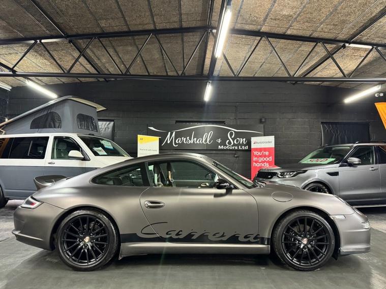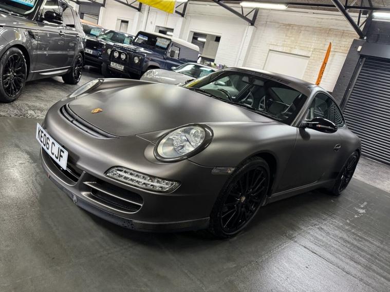2006 Porsche 911 (997) Carrera 3.6 Manual Coupe Tastefully Modified We are pleased to offer this very well-presented 2006 Porsche 911 (997) Carrera 3.6 manual coupe, finished in a satin grey wrap and benefiting from a considered selection of outlaw-inspired enhancements. The result is a characterful yet usable 911 that remains true to the original driving experience. Key upgrades include GT3-style hardback bucket seats, a ducktail rear spoiler, 991 style carbon steering wheel, short-shift gear linkage and a sports exhaust system with X-pipes, delivering an engaging soundtrack without being overbearing. The modifications have been chosen for driving enjoyment and aesthetic balance rather than excess. As part of our pre-sale preparation, the car has just undergone clear bore scope inspections, with images on file for buyer reassurance. In addition, a new tandem pump and brake pipes have been fitted, reflecting the level of care taken in preparing the vehicle. The car benefits from a strong and well-documented service history, with maintenance carried out predominantly by Porsche main dealers and respected Porsche specialists: 05/03/2009 15, 075 miles Porsche Centre Bolton 22/06/2010 32, 763 miles Porsche Glasgow 10/12/2012 46, 750 miles Porsche Glasgow 12/02/2014 49, 392 miles Porsche Glasgow 12/08/2016 62, 251 miles Porsche Glasgow 17/07/2018 68, 704 miles Deutschtek Porsche Specialists 25/10/2020 81, 500 miles I-Cars 30/09/2022 87, 210 miles Unique Porsche Specialists 16/10/2023 89, 500 miles JMH Porsche Specialists In addition, the following notable works have been carried out, with invoices on file: 2021: New clutch and air-oil separator at 83, 402 miles Unique Porsche Specialists 2022: Suspension refresh totalling £3, 500 Unique Porsche Specialists 2024: Water pump replacement The car was originally specified with a desirable factory options list, including: XLF Sports Exhaust 19-inch Sport Design alloy wheels (407) Top-tint windscreen (567) PCM navigation with European DVD (610 / 670) Park Assist (635) Leather front and rear seats (936 / 981 / 983) This is a well-sorted and thoughtfully enhanced 997 Carrera that will appeal to the enthusiast seeking a manual 911 with personality, provenance and evidence of careful ownership. A compelling opportunity to enjoy a modern classic Porsche in its most engaging form.