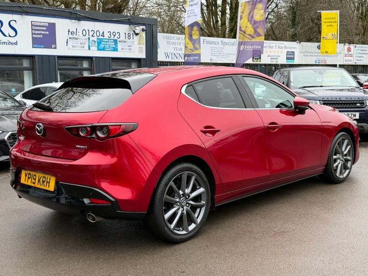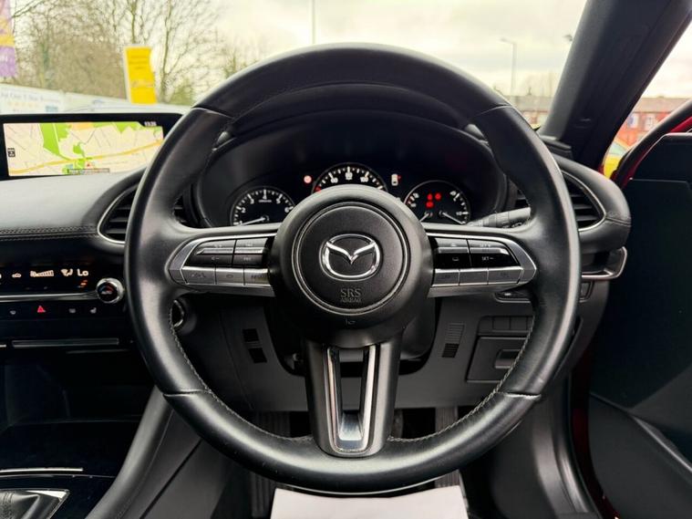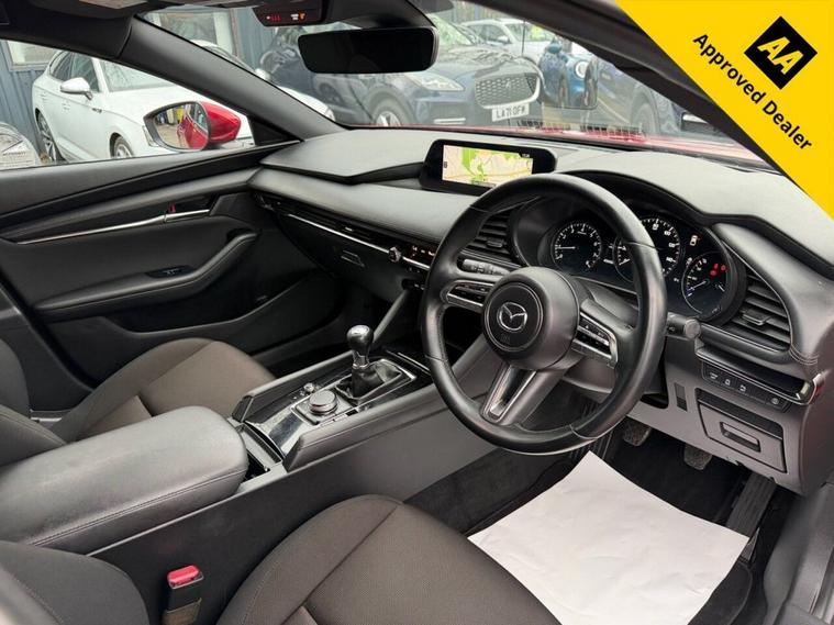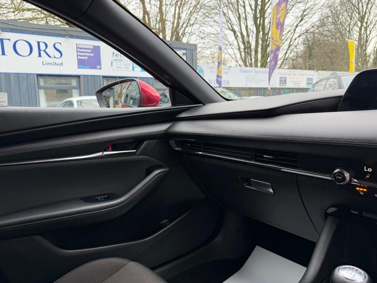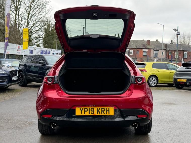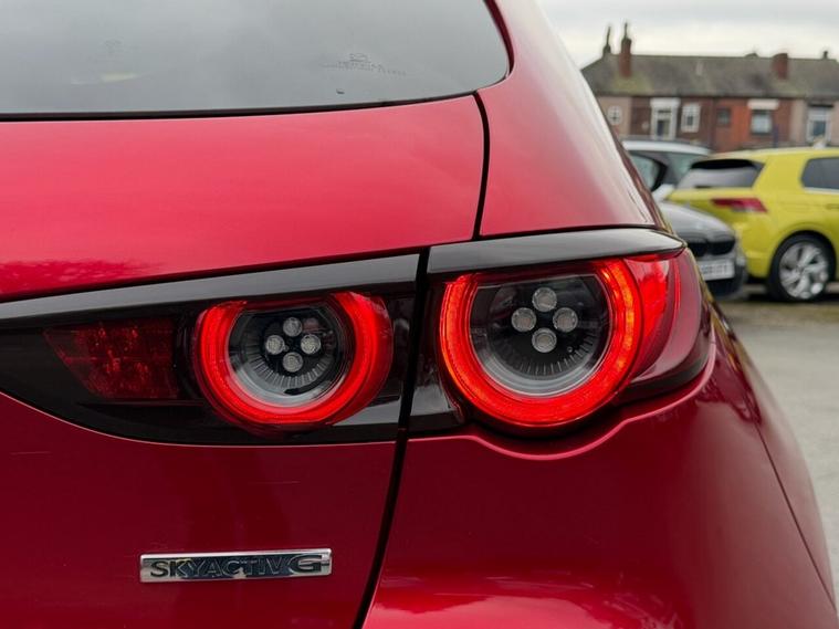 This 2019 Mazda3 SKYACTIV-G Sport Lux boasts an exceptionally low mileage for its age, having covered just 40, 665 miles. This particular example comes with a full service history, with the last service completed on 2025-08-08 at 38, 591 miles, and a clear vehicle history check. It is equipped with a 2.0L petrol engine, meeting Euro 6 emissions standards, and will be supplied with a 12 month MOT for your peace of mind. A 6 month warranty is also included. The Sport Lux trim level offers a range of desirable features designed to enhance your driving experience. These include a Colour Active Driving Display, which presents key information on the windscreen, and Mazda Radar Cruise Control for effortless journeys. For added safety and convenience, it features Blind Spot Monitoring with Rear Cross Traffic Alert and Smart Keyless Entry. The Gear Shift Indicator helps you optimise fuel efficiency, and this model sits in a low insurance group, making it an economical choice. With an acceleration of 0-60mph in 10.4 seconds, this Mazda3 offers a responsive drive that stands out from other vehicles in its class.
