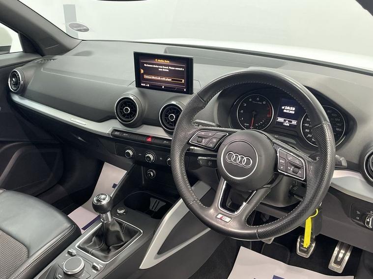 7 STAMP SERVICE HISTORY, AUDI INFOTAINMENT SYSTEM FEATURING SAT NAV, DAB RADIO, BLUETOOTH PHONE AND MEDIA ENABLING UNLIMITED MUSIC STREAMING, S-LINE EMBOSSED HALF LEATHER, AIR CON, PARKING SENSORS, 18 ALLOY WHEELS, AUTOMATIC LIGHTS/ WIPERS, LED LIGHTS, FLEXIBLE MONTHLY PAYMENTS AVAILABLE ON THIS CAR. This 2019 Audi Q2 TFSI S line finished in Ibis white with s-line half leather interior offers a compelling blend of style and efficiency, boasting low CO2 emissions for its class. As a Euro 6 compliant vehicle, it features a responsive 1.5 litre petrol engine, ensuring a smooth and capable driving experience. The S line trim enhances its sporty appeal with striking 18 inch alloy wheels in a matt titanium look with a diamond cut finish. Practicality is also key, with the inclusion of a light and rain sensor for automatic headlight activation and manual air conditioning to keep you comfortable. Connectivity is seamless thanks to the Bluetooth interface, allowing for easy integration of your devices. The performance of this Audi Q2 is noteworthy, achieving 0 to 60 miles per hour in just 8.5 seconds, demonstrating its agile acceleration. The advanced LED headlights, complemented by dynamic rear indicators, not only improve visibility but also add a modern touch to the vehicles design. These features collectively indicate a superior driving proposition compared to other vehicles in its segment, offering a refined and engaging ownership experience. Sat nav, multi media entertainment with blue-tooth media streaming, rear parking sensors, electric windows and mirrors, centre arm rest, remote central locking alarm and immobiliser, isofix rear seats. Supplied with HPI report and vehicle book pack. THIS CAR IS AA APPROVED AND SOLD WITH A 145 POINT AA INSPECTION CERTIFICATE AND A NATIONWIDE PARTS AND LABOUR WARRANTY, SAME DAY DRIVE AWAY AVAILABLE ON ALL AA INSPECTED CARS. WE OFFER WITH ALL OF OUR CARS A BRONZE, SILVER AND GOLD PROTECTION PACKAGE WHICH INCLUDES A 145 POINT AA INSPECTION, NATIONWIDE ALL MECHANICAL AND ALL ELECTRICAL WARRANTY, AA BREAKDOWN COVER, 12 MONTHS MOT TOP UP VOUCHER, GARDEX SANITIZATION, HPI GOLD CHECK AND COURTESY CAR AVAILABILITY FROM £299. WE ALSO OFFER ALL TYPES OF FINANCE. 3 YEAR PARTS / LABOUR WARRANTY AND SERVICE PLANS AVAILABLE ON ALL AA INSPECTED CARS. .