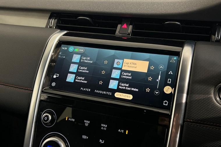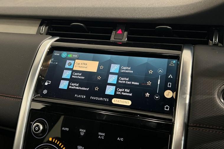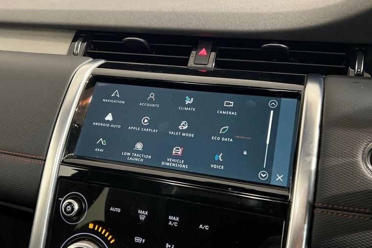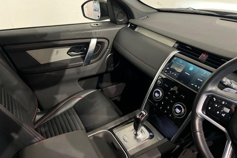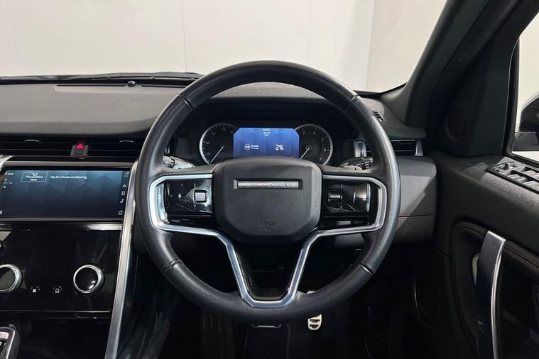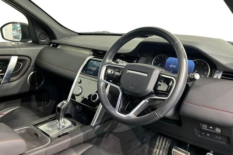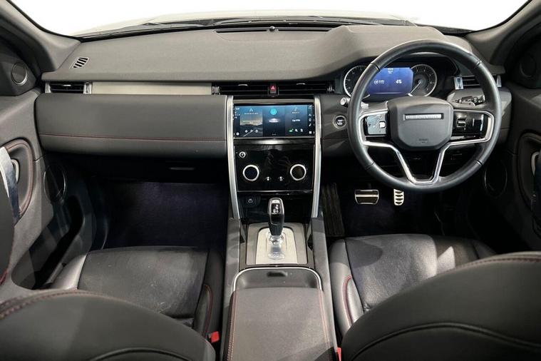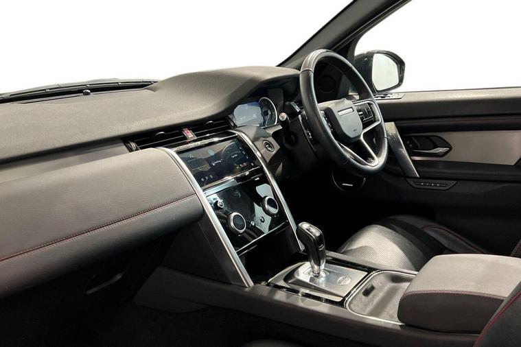 This 2022 Land Rover Discovery Sport P300e R Dynamic SE boasts a clear vehicle history and has had only one owner from new. This Euro 6 compliant, four wheel drive model features a 1.5 litre petrol plug in hybrid engine, offering an impressive 0-60mph acceleration in just 6.2 seconds. Its MOT is valid until December 2026, providing peace of mind for the new owner. The R Dynamic SE trim enhances the already generous specification with a Meridian Surround Sound System, twin front cupholders with a cover, striking red brake calipers, and practical black roof rails. The large boot space ensures ample room for all your needs, while the fixed panoramic roof, complete with a panoramic sunroof, floods the cabin with natural light. These features collectively demonstrate the superior comfort and capability of this Discovery Sport compared to other vehicles in its class.