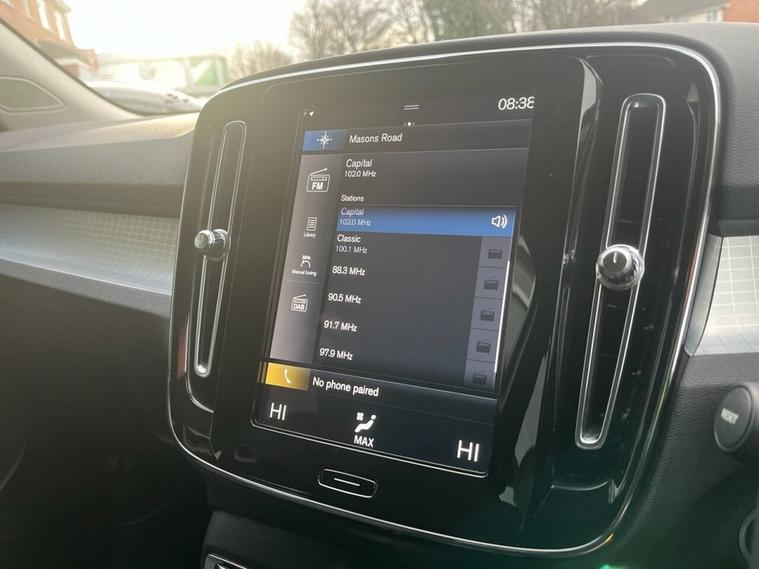This 2021 Volvo XC40 T4 Inscription Expression is a Euro 6 compliant plug in hybrid with a clear vehicle history and an MOT valid until October 2026, having had only one owner. This stylish SUV features a 1.5 litre petrol plug in hybrid engine and comes with the desirable Inscription Expression trim. Notable features include Volvo Cars Services with App, offering convenient Keyless Entry, and a 2 Zone Electronic Climate Control system with rear air vents to ensure comfort for all passengers. The XC40 also boasts Automatic LED Headlights with Active High Beam and Day Running Lights, a Bluetooth Handsfree System for seamless connectivity, and Rear Park Assist to aid with parking manoeuvres. These features, combined with its single owner provenance and long MOT, demonstrate a well cared for vehicle that offers a superior driving experience compared to other similar models on the market.