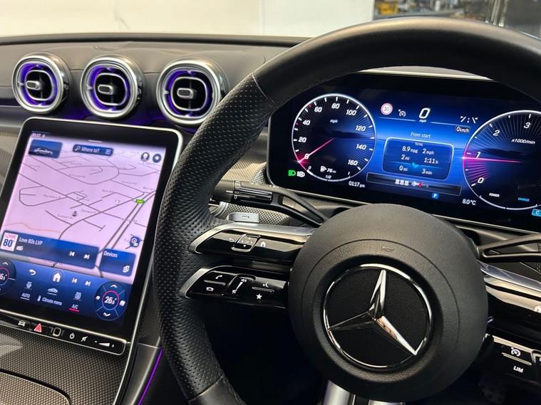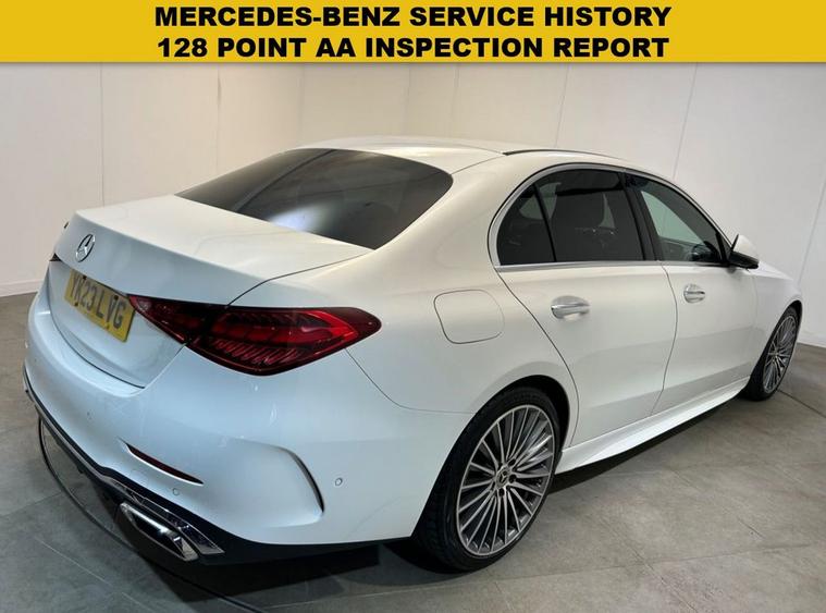 Stunning, high specification Mercedes C-Class with Satellite navigation, 360 degree parking cameras, Heated front seats, Front memory seats, 19 Alloy wheels, Apple carplay, Bluetooth audio and much more. Cared for and maintained to the very highest standard with all Mercedes-benz main agent service history. This new shape C-Class has been independently inspected by the AA for your added peace of mind. We have uploaded a full Hd walkaround video to show the quality both inside and out of this C-Class Premi