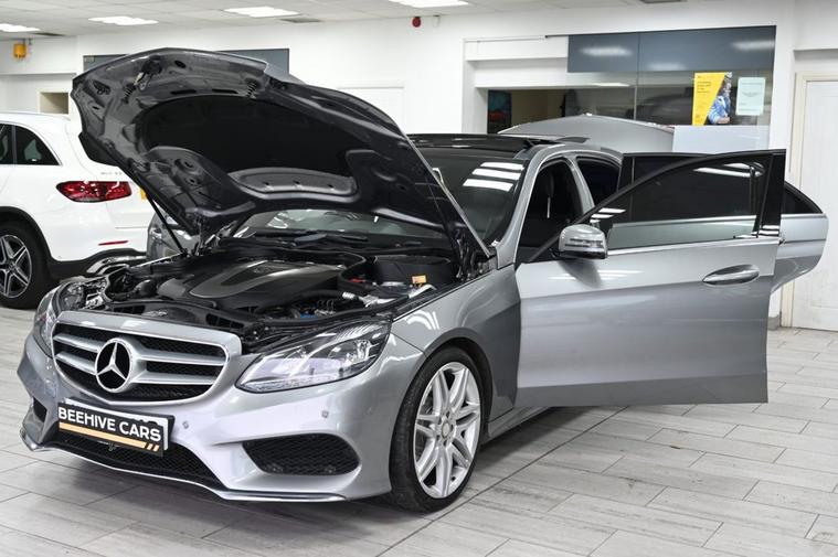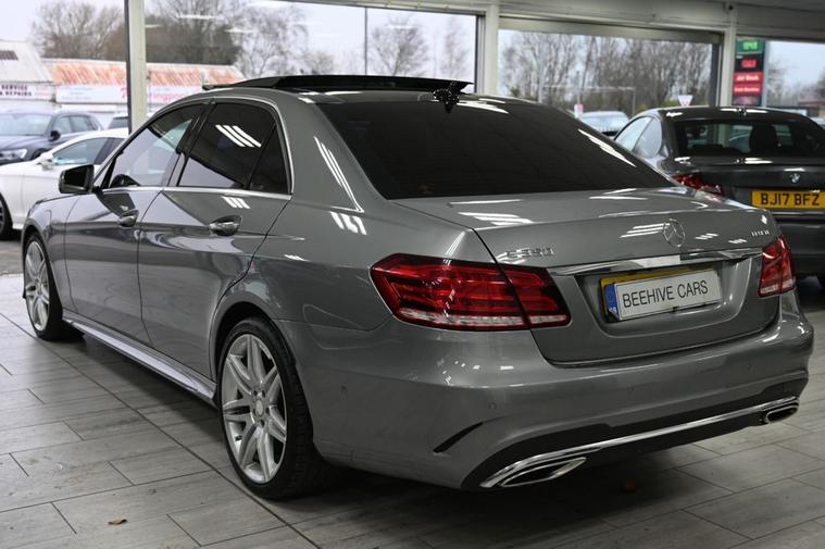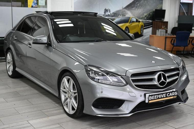 DRIVE AWAY TODAY OR HOME DELIVERY TO YOUR DOORSTEP FINANCE & PART EXCHANGE ARRANGED ONLINE** 7 DAY MONEY BACK GUARANTEE** Lovely car & drive Mercedes E350 V6 blue-tec amg line in metallic silver with service history sat nav cd dab radio bluetooth usb reverse camera panoramic roof leather seats heated seats electric memory seats electric folding door mirrors front and rear parking aid sensors xenon lights flat bottom steering wheel with f1 style paddleshifts eco button alloys privacy
