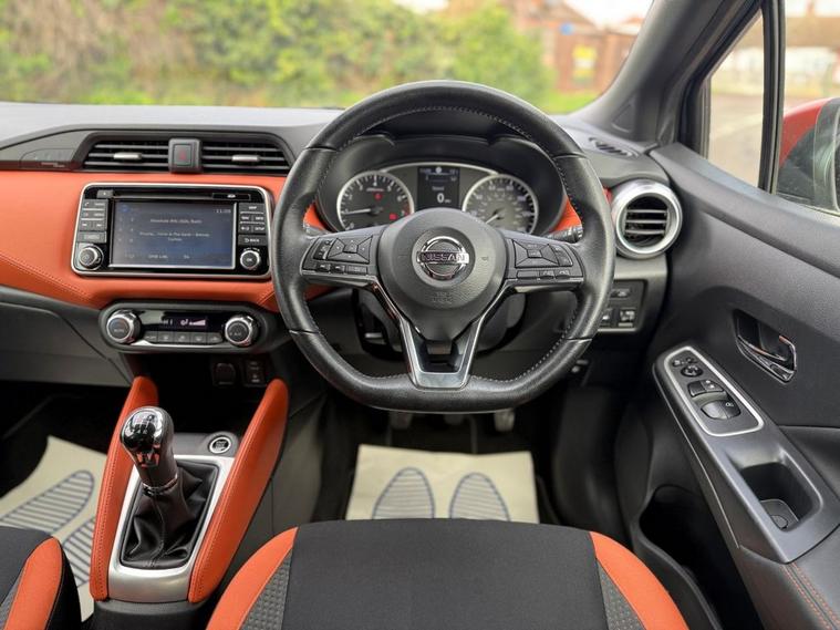 Here for sale at Leigh Cars Ltd we are delighted to present this impressive low mileage example of this Nissan Micra 0.9 Tekna petrol manual finished in metallic grey paint, with the all important factory upgraded exterior plus pack in energy orange, really making this one stand out! This particular example comes with a good service history - 4 services. As part of our thorough pre sale preparations the vehicle has been fully safety checked, has had a new service completed in February 2026 and comes with a long advisory free MOT for your peace of mind - expiry October 2026. The Tekna level trim comes with some great specification in its class including satellite navigation, apple car play, rear parking aid, rear parking camera, lane departure warning assist, climate controlled air conditioning, cruise control, bluetooth, DAB, voice command, auto lights + wipers, 17 alloy wheels, USB + AUX connections, electric windows + mirrors, remote central locking, keyless entry + start, power fold door mirrors, 1 key (no spare key) + much much more. This would be an ideal first car for someone or potentially a car to pop around town in as it is both practical, versatile and economical with exceptional running costs and low insurance group This superb award winning engine produces 90bhp with an average fuel economy of an amazing 45+mpg and road tax of only £195 per year so is one of the most economical city hatchbacks on the market today - ideal for anyone who is conscious of ongoing running costs. This truly is in amazing condition inside and out and we would thoroughly recommend taking a test drive to see for yourselves. **VIEWING STRICTLY BY APPOINTMENT ONLY** As we are an AA accredited dealer you will receive 12 months complimentary AA roadside assistance. AA warranty packages available up to 2 years and superb low rate zero deposit finance deals available today. Why not give us a call or visit our website finance calculator to see how affordable your new car could be. We are rated 5 stars by our customer reviews on Autotrader, Facebook, Google, Trustpilot and Car Gurus so you can be assured you are dealing with a company that truly cares about the customer. We take great pride in providing a personal quality service like no other and guarantee to make your purchase a smooth and pleasant experience. Please read our customer reviews online to see what they have to say about the level of service they received from us when purchasing a car. We have recently been awarded with the accolade of Car Gurus Top Rated Dealer 2018, 2019, 2020, 2021, 2022 and 2023 - Buy Your Car From The Best In Essex. Viewing strictly by appointment only - please call to avoid disappointment.