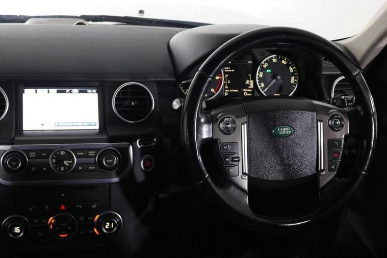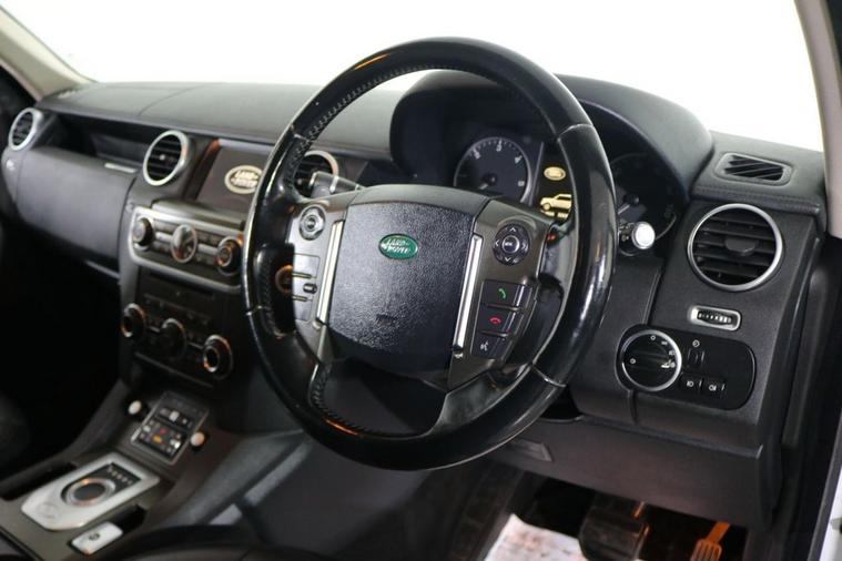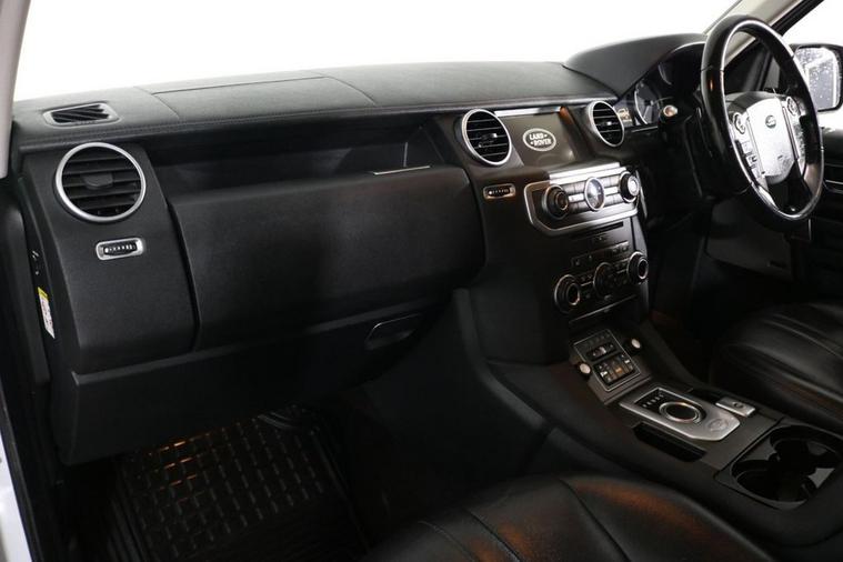 This desirable 7 SEATER Automatic 4WD Land Rover Discovery 4 XS finished in White looks fantastic complemented by 19 inch Alloy Wheels and Rear Privacy Glass. Find your way with integrated SATELLITE NAVIGATION with TOUCHSCREEN Display. Sit in luxury with FULL LEATHER Upholstery with HEATED FRONT SEATS. Park in ease with FRONT & REAR PARKING SENSORS. Keep connected with BLUETOOTH Phone System. Listen to your music through DAB Digital Radio with HARMAN KARDON Sound System. Comfortable to drive with CLIMATE CONTROLLED AIR CONDITIONING and CRUISE CONTROL. Well equipped with Power-Fold Door Mirrors, Auto Headlights and Rain-Activated Wipers. Also fitted with Multifunctional Steering Wheel, ISOFIX seats, Alarm and Remote Door Locking with 2 x keys. Buy in confidence with SERVICE HISTORY with 7 x Documented Services and NEW CAMBELT Kit Just Fitted.