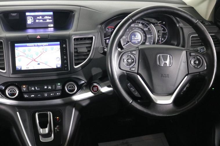 This desirable AUTOMATIC 4WD Euro 6 Honda CR-V EX finished in Lunar Silver looks fantastic complemented by 18 inch Alloy Wheels, LED Running Lights and Rear Privacy Glass. Find your way with integrated Garmin SATELLITE NAVIGATION with TOUCHSCREEN Display. Park in ease with REVERSE CAMERA and FRONT & REAR PARKING SENSORS. Sit in luxury with PANORAMIC GLASS SUNROOF, FULL LEATHER Upholstery with HEATED FRONT SEATS and Electric / Memory Drivers. Keep connected with BLUETOOTH phone system with USB ports. Listen to your music through DAB Digital Radio. Comfortable to drive with Dual-Zone CLIMATE CONTROLLED AIR CONDITIONING and CRUISE CONTROL with Speed Limiting Function. Well equipped with Power-Tailgate, Auto Headlights, Rain Activated Wipers and Power-Folding Door Mirrors. Also fitted with ISOFIX seats, Multifunctional Steering Wheel, Immobiliser, Alarm and Remote Door Locking with 2 x keys. Buy in confidence with SERVICE HISTORY with 8 x Documented Services.