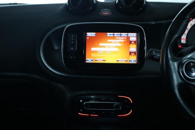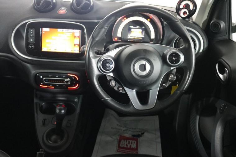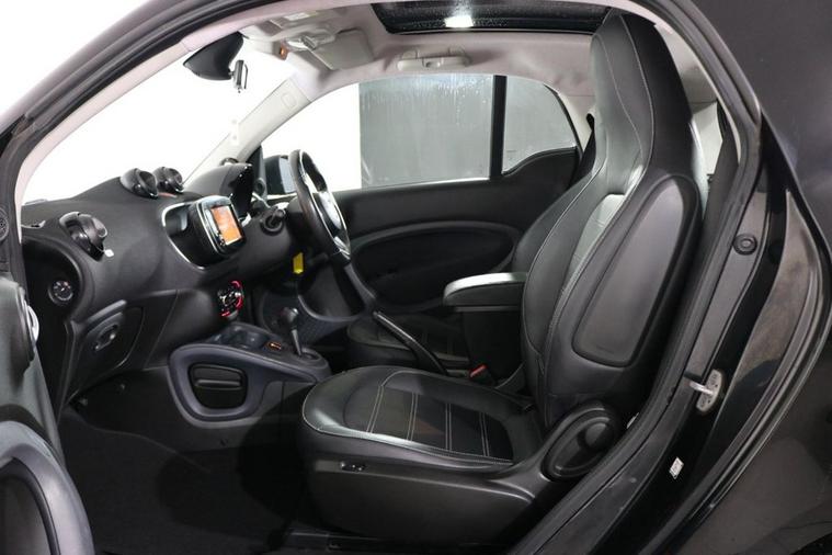 This well maintained Smart Fortwo PRIME PREMIUM edition finished in Black looks fantastic complemented by 15 inch black alloy wheels and LED Daytime Running Lights. Enjoy economical motoring with JUST £20 ROAD TAX, up to 78 MPG and CHEAP INSURANCE. Find your way with integrated SATELLITE NAVIGATION with LCD Touch-Screen controls. Keep connected with BLUETOOTH phone system with USB port and Voice-Control. Sit in luxury with FULL BLACK LEATHER upholstery, HEATED FRONT SEATS and PANORAMIC GLASS ROOF. Comfortable to drive with CRUISE CONTROL and AUTOMATIC CLIMATE CONTROL with AIR CON. Park in ease with REAR PARKING SENSORS. Also equipped with ISOFIX Seats, electric windows, immobiliser and remote door locking with 2 x keys. Buy in confidence with SERVICE HISTORY with 7 x Documented Services.