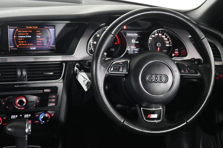 This well maintained Audi A5 S Line Special Edition finished in Ice Silver looks fantastic complemented by Convertible Roof, 19 inch Alloy Wheels, LED Headlights and S Line Body Styling. Find your way with integrated SATELLITE NAVIGATION with LCD Display. Sit in luxury with FULL LEATHER Upholstery with HEATED FRON SEATS. Park in ease with REAR PARKING SENSORS. Keep connected with BLUETOOTH Phone System. Listen to your music through DAB Digital Radio & Audi AMI with BANG & OLUFSEN SOUND SYSTEM. Comfortable to drive with Dual-Zone CLIMATE CONTROLLED AIR CONDITIONING and CRUISE CONTROL. Well equipped with Rain-Activated Wiper and Auto XENON Headlights. Also fitted with ISOFIX seats, Multifunctional Steering Wheel, Alarm and Remote Door Locking with 2 x keys. Buy in confidence with JUST 2 OWNERS from new and SERVICE HISTORY with 7 x Documented Services.